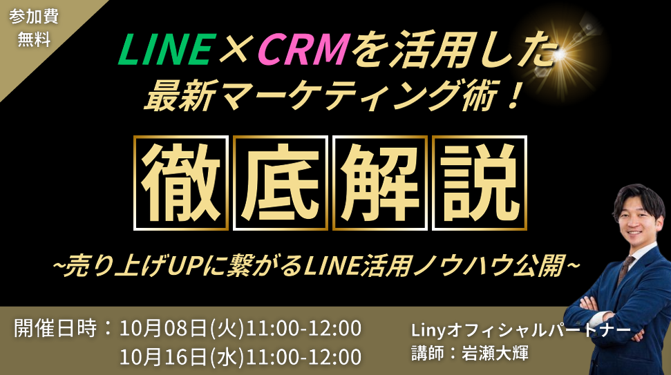 セミナー内容: LINE公式アカウント×CRMの活用で、売上向上と顧客満足度を劇的に改善するための最新ノウハウを大公開!