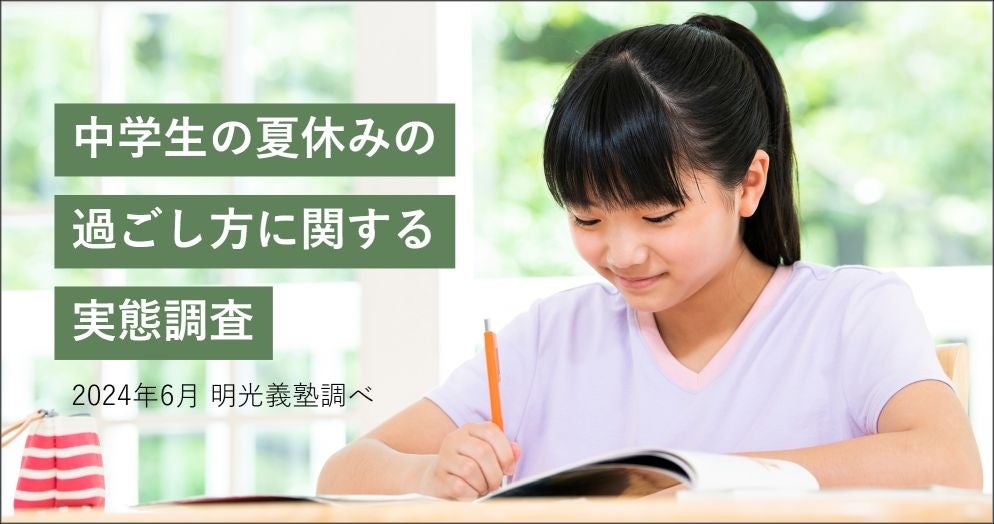 個別指導の学習塾「明光義塾」を全国展開する株式会社明光ネットワークジャパン(本社:東京都新宿区、代表取締役社長:山下 一仁)は、中学生の子どもを持つ全国の保護者1,000名を対象に、「中学生の夏休みの過ごし方に関する実態調査」を実施いたしました。