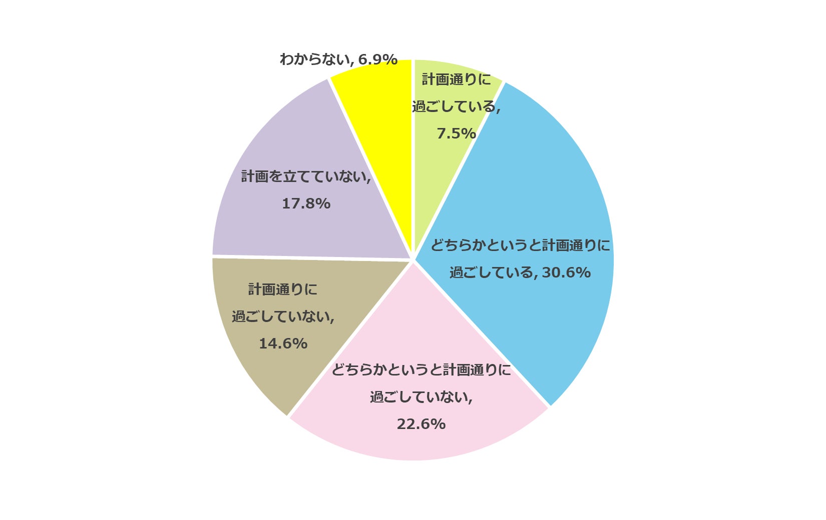 次に、昨年の夏休みの過ごし方について、子どもが計画通りに過ごしたか質問したところ、38.1%が「計画通りに過ごしている」(計画通りに過ごしている:7.5%、どちらかというと計画通りに過ごしている:30.6%)と回答しました。一方で、37.2%が「計画通りに過ごしていない」(計画通りに過ごしていない:14.6%、どちらかというと計画通りに過ごしていない:22.6%)、17.8%が「計画を立てていない」と回答、合わせると中学生の半数以上が計画通りに夏休みを過ごせていないか、計画を立てていないことがわかりました。