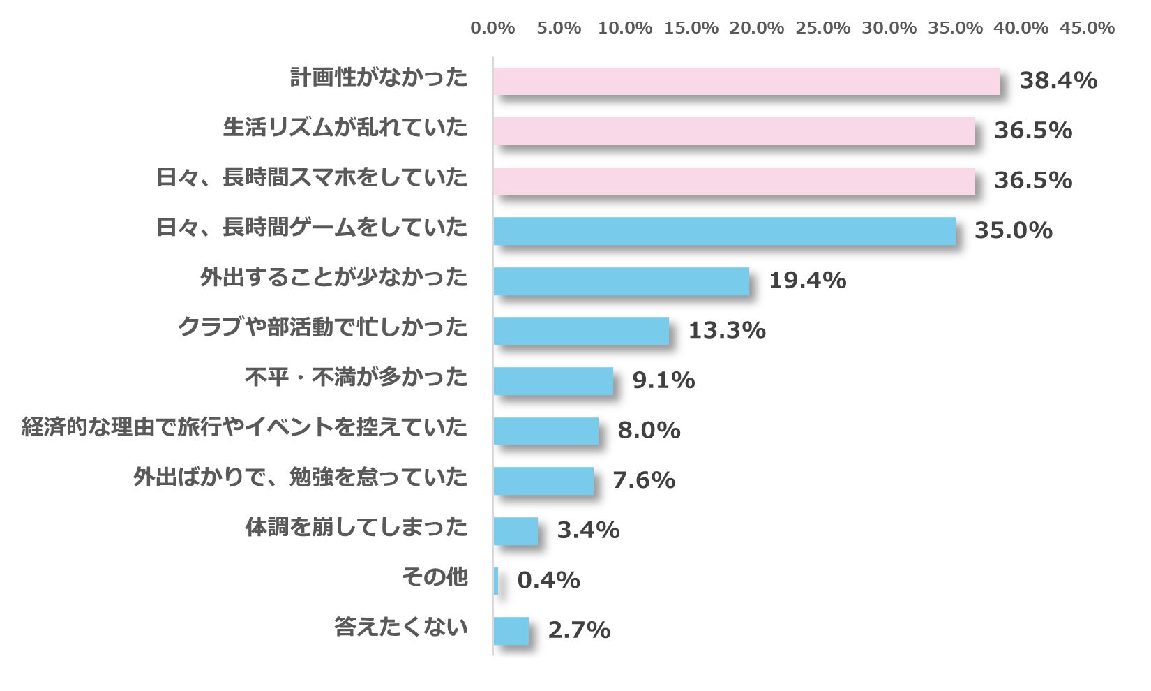 ・夏休みを有意義に過ごせなかった理由、最多回答は「計画性がなかった(38.4%)」