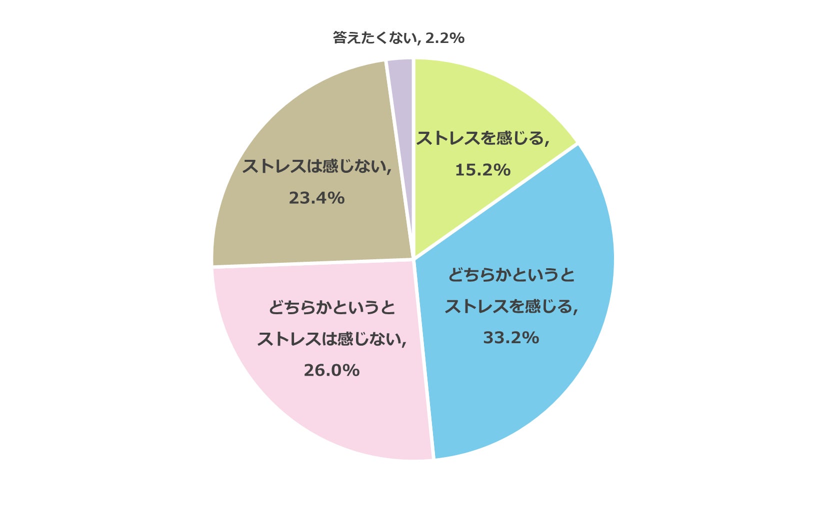 中学生の子どもを持つ全国の保護者1,000名を対象に、夏休み期間中、子どもに対してストレスを感じることがあるか質問したところ、48.4%が「ストレスを感じる」(ストレスを感じる:15.2%、どちらかというとストレスを感じる:33.2%)と回答しました。