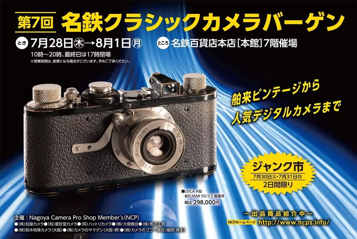 2022年7月28日(木)〜8月1日(月)、名古屋駅の名鉄百貨店本店(本館)7階催場にて、中古カメラ販売イベント「第7回 名鉄クラシックカメラバーゲン」が開催されます。