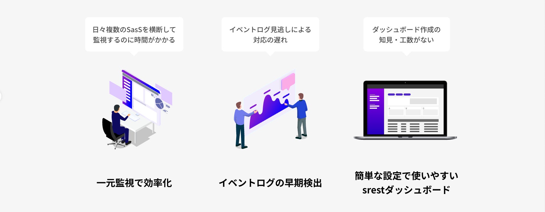 そこで、AWSやDatadogなどのイベントログを収集・可視化する仕組みを自社で開発したのが「srest」の始まりです。当社はこれまでにもマーケティングやSaaSの分野で複数のデータを集約・可視化するサービスを開発してきた実績があり、今回の開発にもその経験が活かされています。当社のSREチームが実際に使いながら改善を重ね、この度サービスとして提供開始するに至りました。