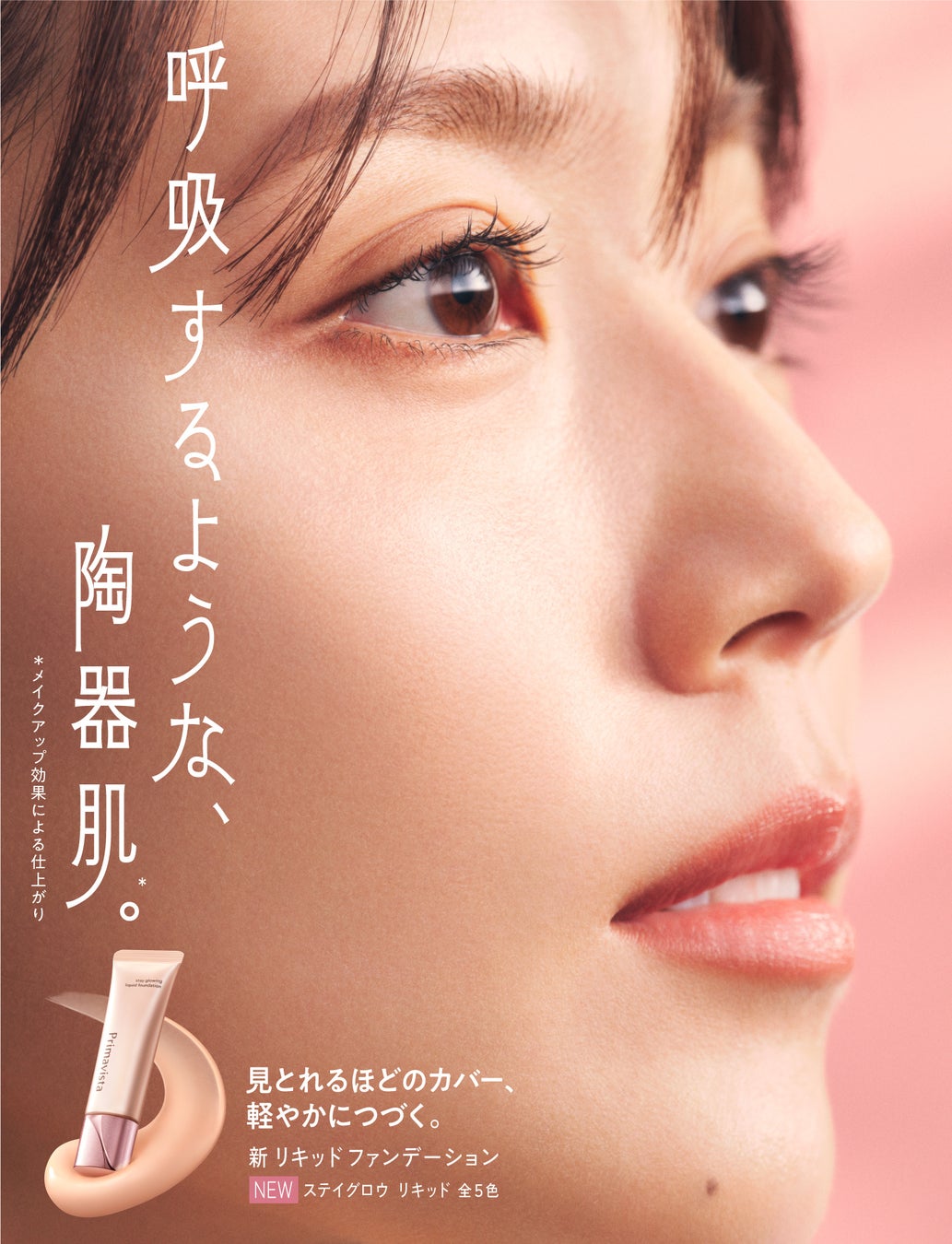 プリマヴィスタから「ステイグロウ リキッド」が新登場 有村架純さんの“呼吸するような陶器肌”に超接近!