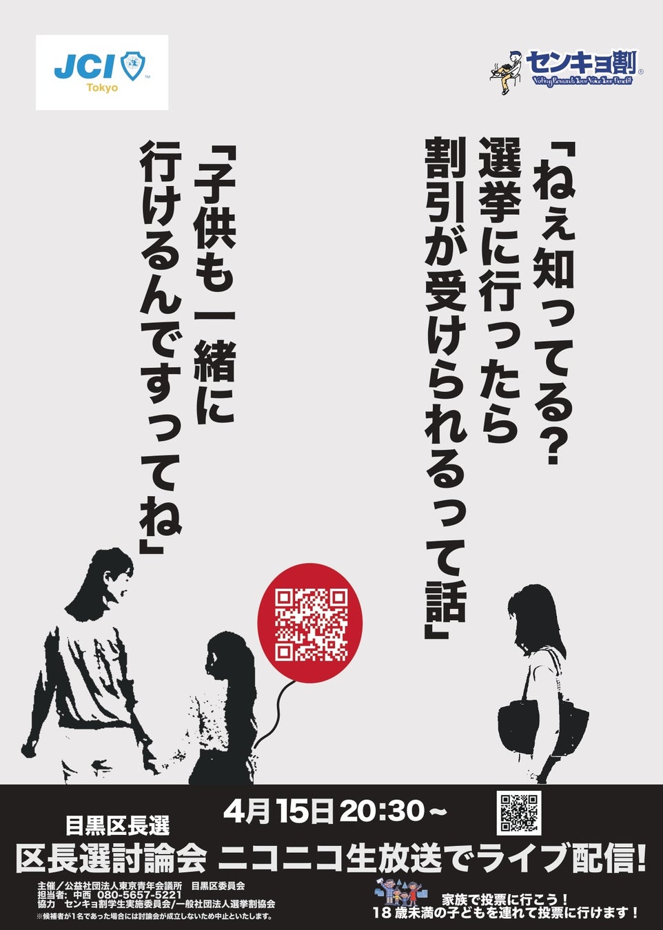 目黒区長選挙公開討論会開催。4月15日(月)20:30よりニコニコ動画で生配信。