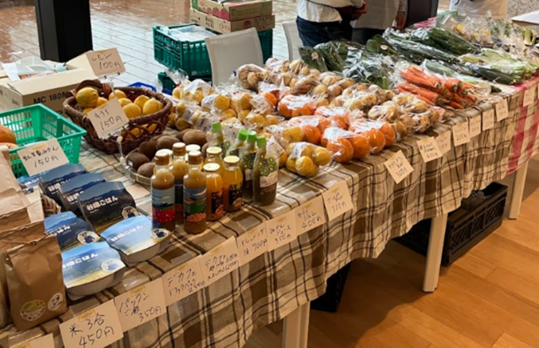 アトラス加賀の屋内スペースにて開催された今回のマルシェでは、その日に収穫されたそらまめや小松菜、人参などの野菜類をはじめ、カラマンダリンやゴールデンオレンジ、キウイなどの柑橘類、キクラゲ、米、さらに梅ドレッシングやキウイジュレなどの加工品が販売されました。いずれも小田原市および西湘地域で生産された“つくり手の顔が見える”こだわりの品々です。