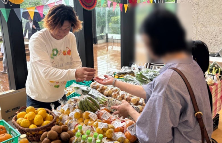今回のマルシェは、もともとバザーの賑わいを高めるために「外部からの出店は可能か?」という相談から始まりました。その中で、コネプラの業務委託先として関わっている小田原在住のスタッフが、地域で農のコミュニティ支援活動を行っていたことから、小田原の若手農家グループ「西湘うみかぜふぁーむ」とつながりが生まれました。ちょうど、同グループでも都市部での販売に関心を持っていたタイミングだったこともあり、今回の連携が実現。コネプラが両者をつなぐことで、 「出店料・販売マージン・依頼費用など一切なし」という、関係性を基盤とした連携が実現しました。