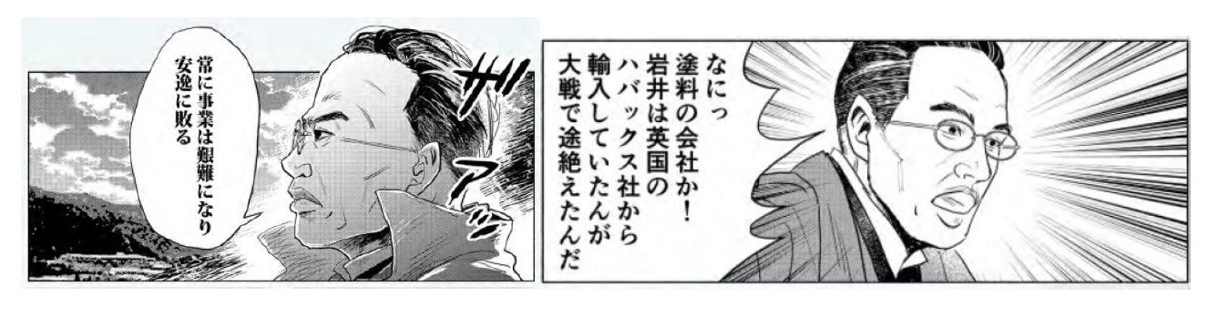 岩井商店は、神戸の御影に岩井家本邸を構える。大戦によりソーダの輸入が細ったことを機に国産化を決意。山口県の徳山に日本曹達工業(現・株式会社トクヤマ)を設立。鈴木商店は、ケニアの天然ソーダの長期調達に成功し、太陽曹達(現・太陽鉱工株式会社)を設立する。岩井商店は、塗料の国産化を目指し、尼崎に現在の関西ペイント株式会社を設立。
