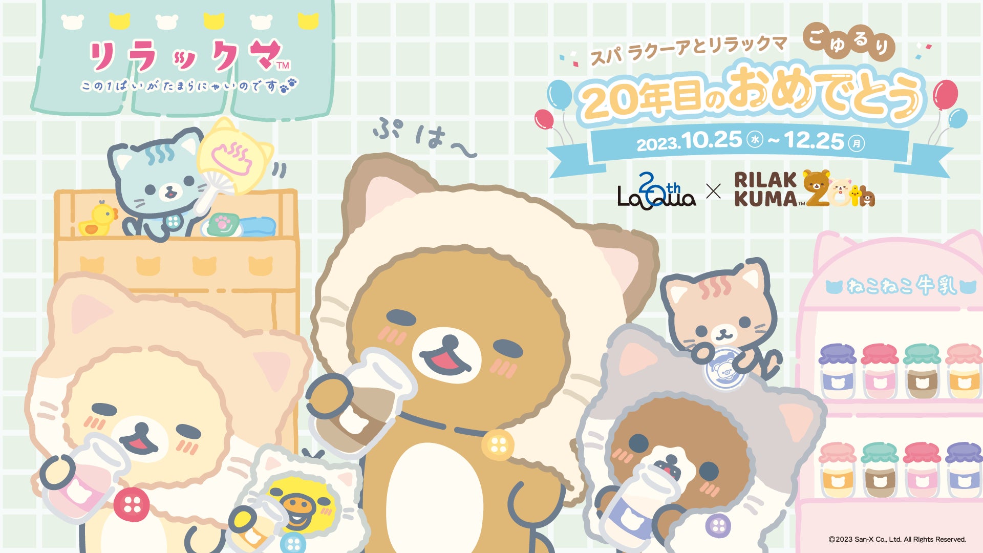 東京ドーム天然温泉 Spa LaQua 20周年×「リラックマ」20周年 ダブルアニバーサリーイヤーを記念『スパ ラクーアとリラックマ、ごゆるり20年目のおめでとう』10月25日(水)より開催