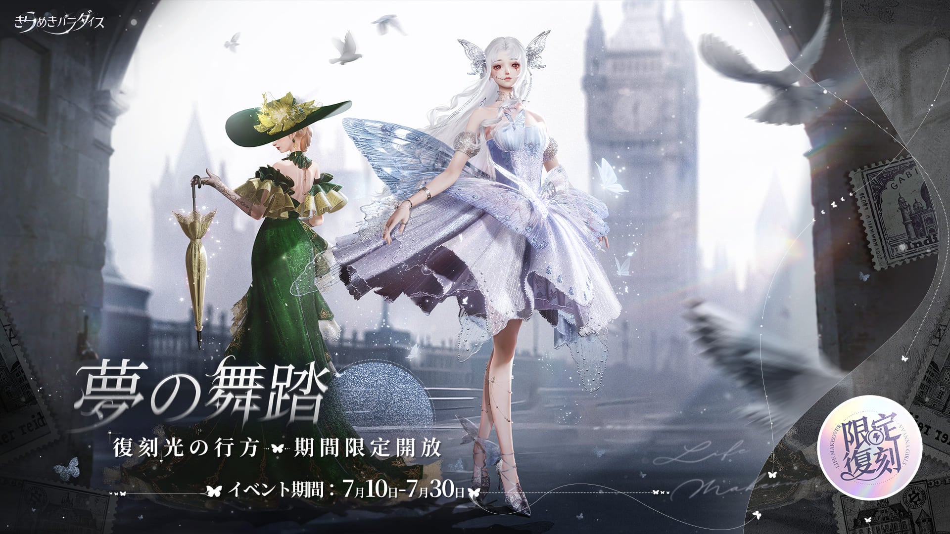 『きらめきパラダイス』7月10日(木)よりイベント『夢の舞踏』が復刻でレトロ映画のポスター衣裳が再登場!さらに88日間の長期ガチャも開催