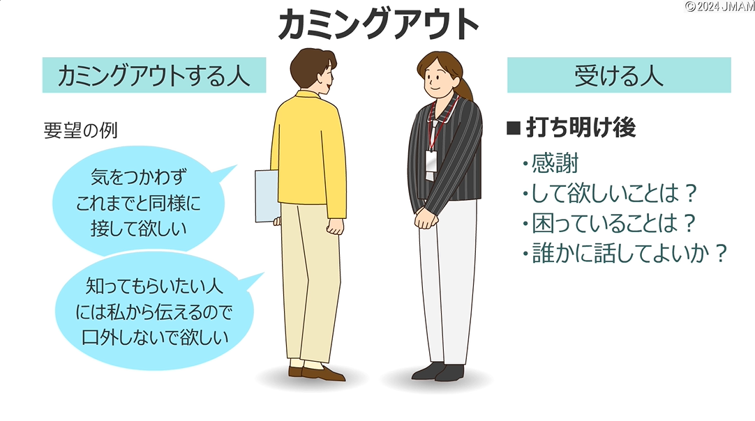 ●カミングアウトの相談を受けたときの対応や日常的に心がけるとよい言葉づかいなど具体的な言動を身につけます。