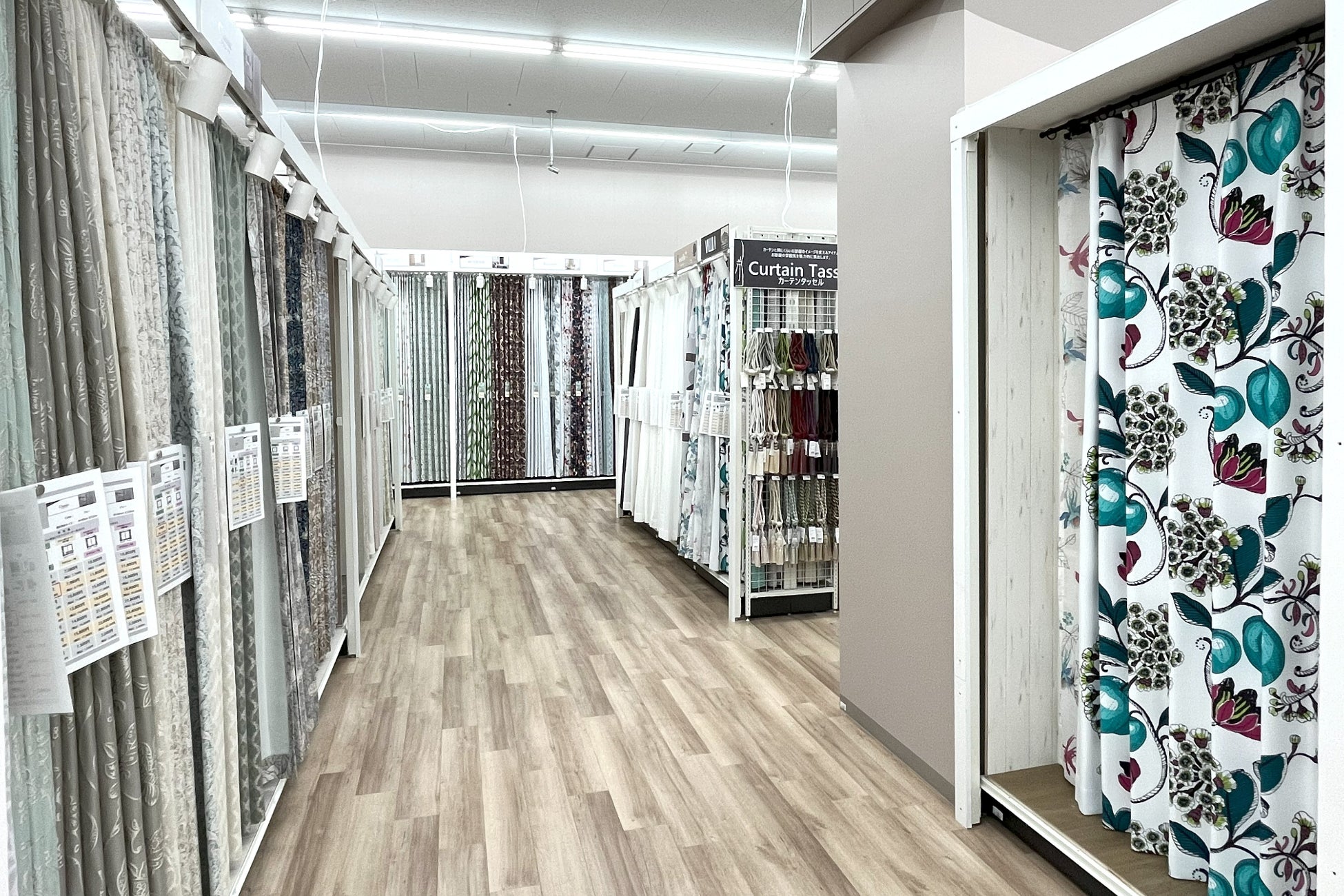 オーダーカーテン:国内一流メーカーのカーテンをはじめ、インテリアブラインドやロールスクリーンを幅広く取り揃え、お部屋に最適な一枚をお選びいただけます。店内には約200種類のサンプルを展示しており、実際に色味や質感を手に取ってお確かめいただけます。