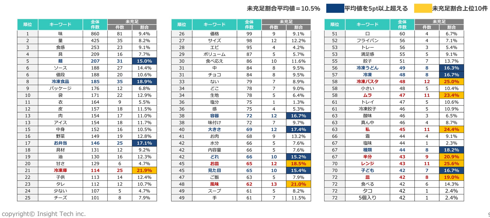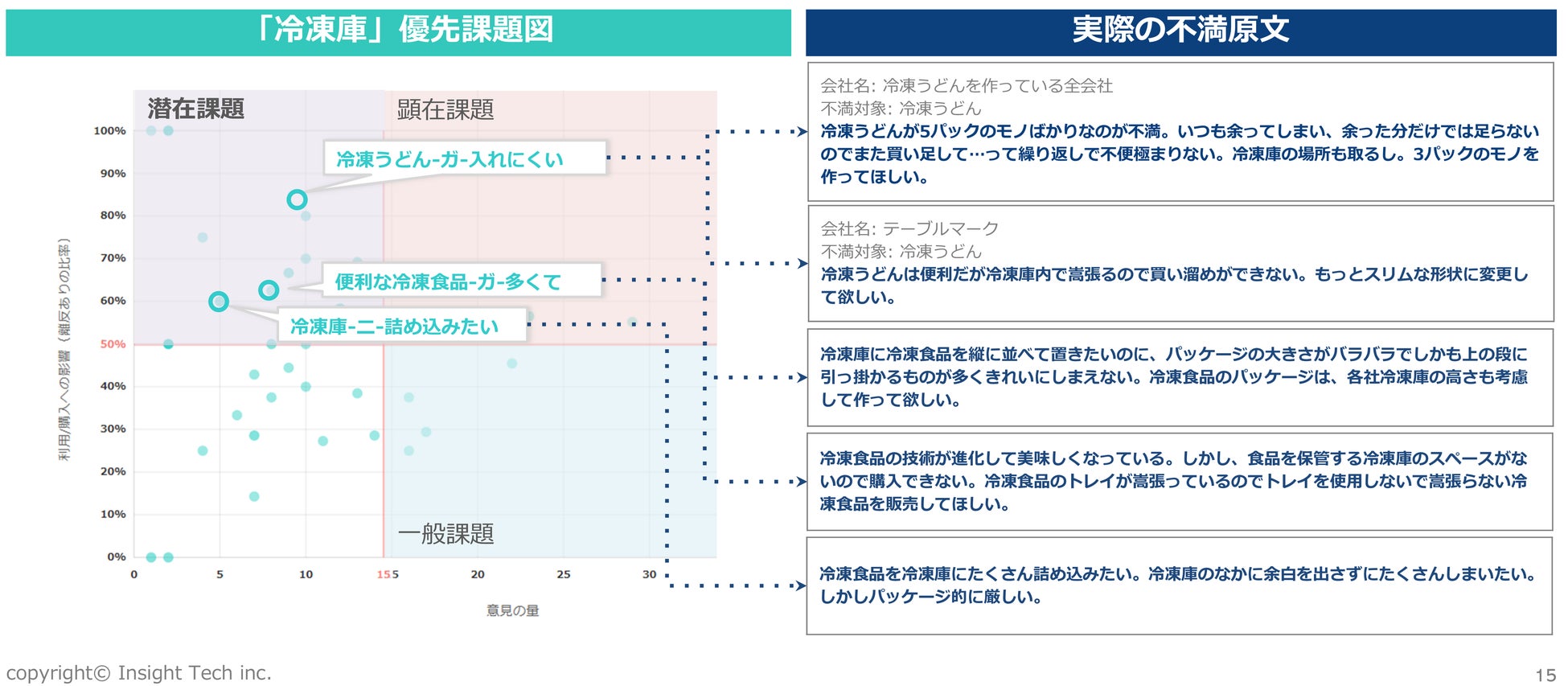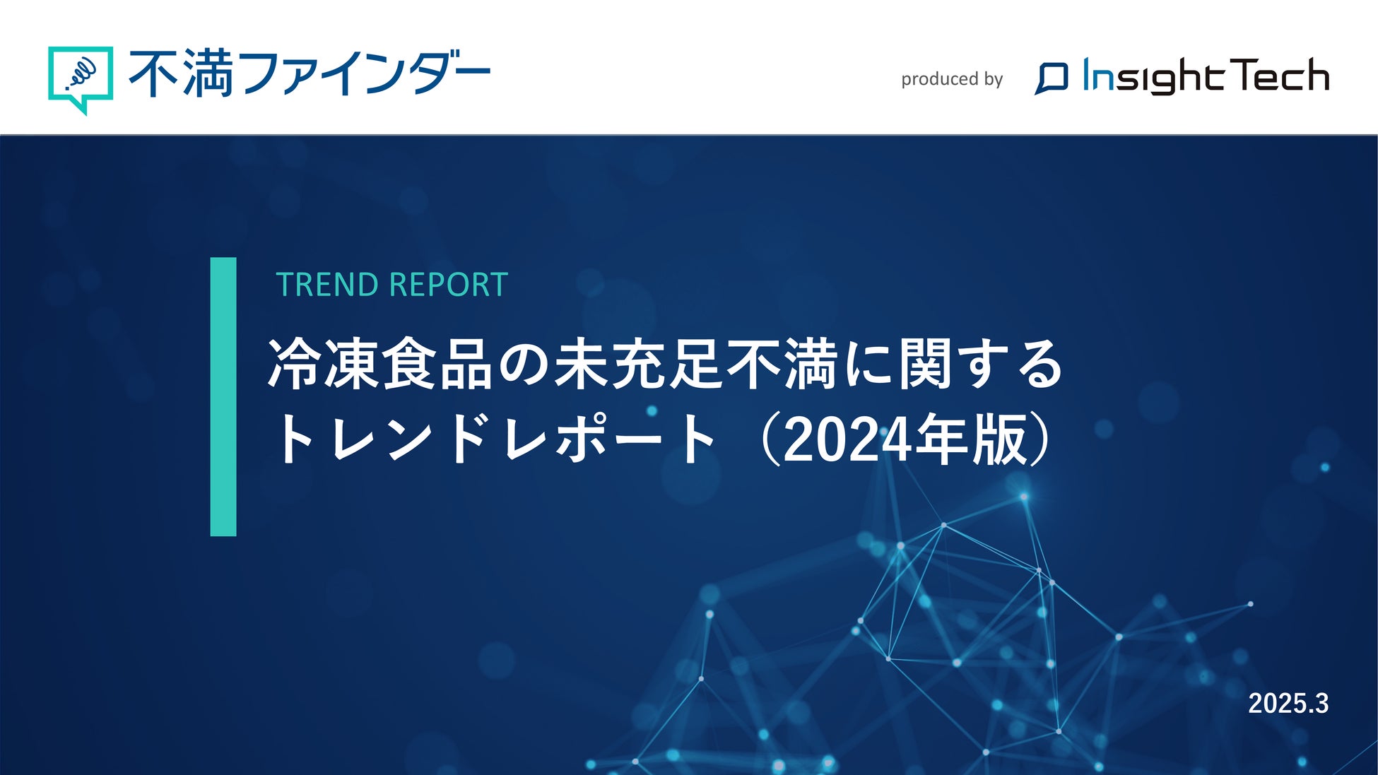 株式会社 Insight Tech(東京都新宿区、代表:伊藤友博、以下 Insight Tech)は、同社が運営する『不満買取センター』に寄せられた冷凍食品にまつわる不満を『不満ファインダー』を用いて解析・考察したレポートを公開しました。