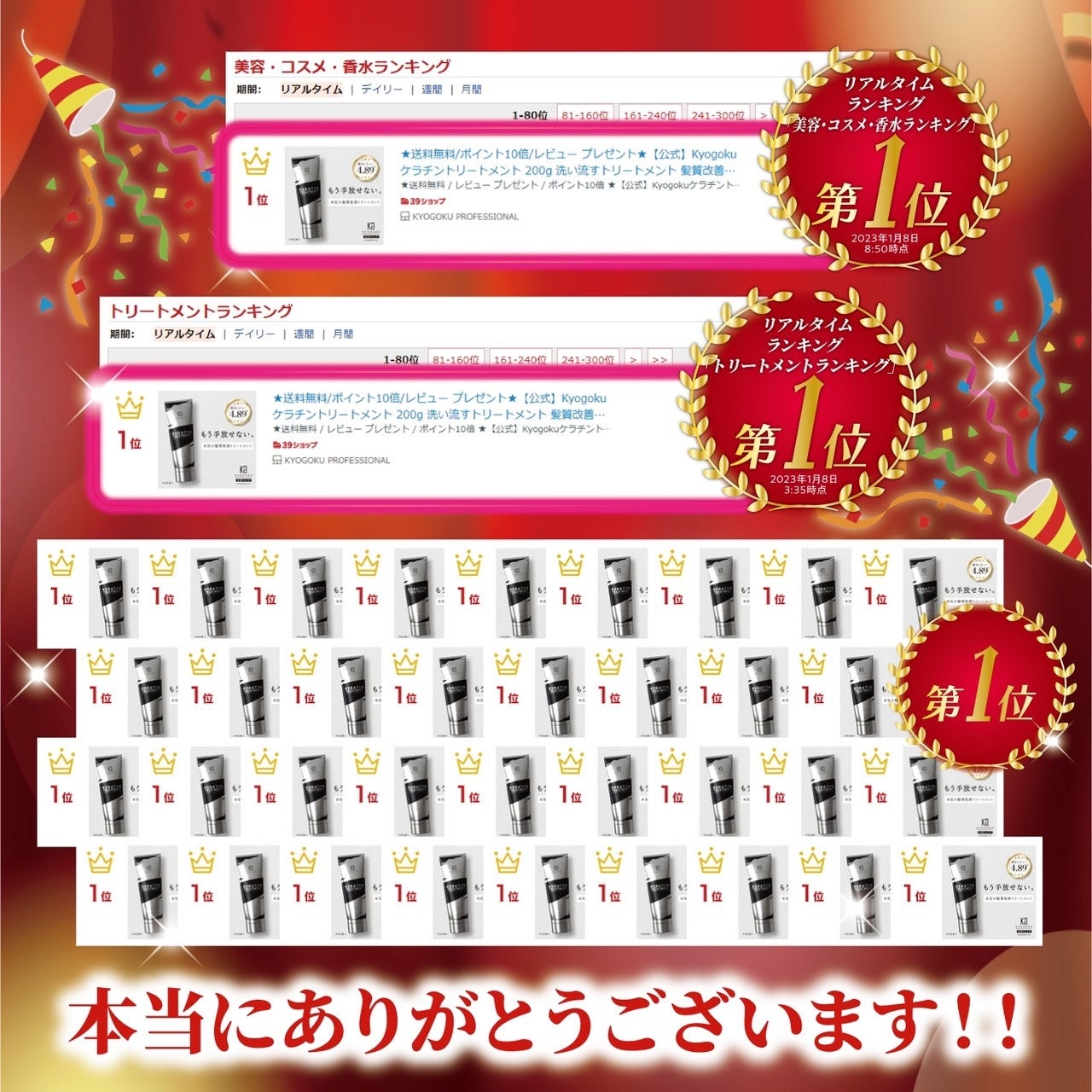 株式会社kyogokuが展開する美容ブランド「KYOGOKU PROFESSIONAL」で人気の「KYOGOKU ケラチントリートメント」が楽天の人気ランキングで37冠を達成いたしました!