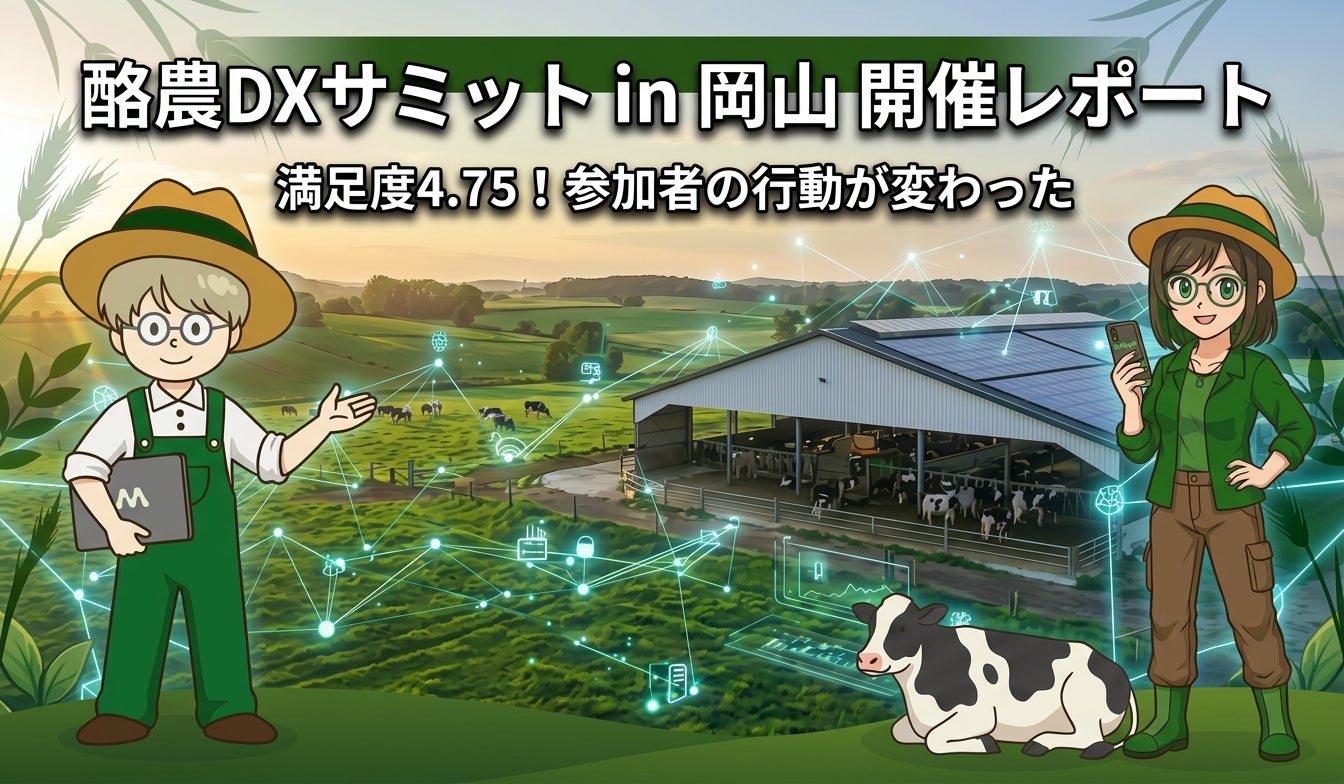 農業×新技術を推進する農家支援コミュニティ「Metagri研究所」(運営:株式会社農情人、本社:千葉県船橋市、代表取締役:甲斐雄一郎)は、地域交流牧場全国連絡会 クラブ・ユース事業主催の「近畿・中国・四国地区 酪農DXサミット in 岡山 〜AIで繋がる、生産者と地域の新しい未来〜」(2026年3月6日)に登壇協力しました。
