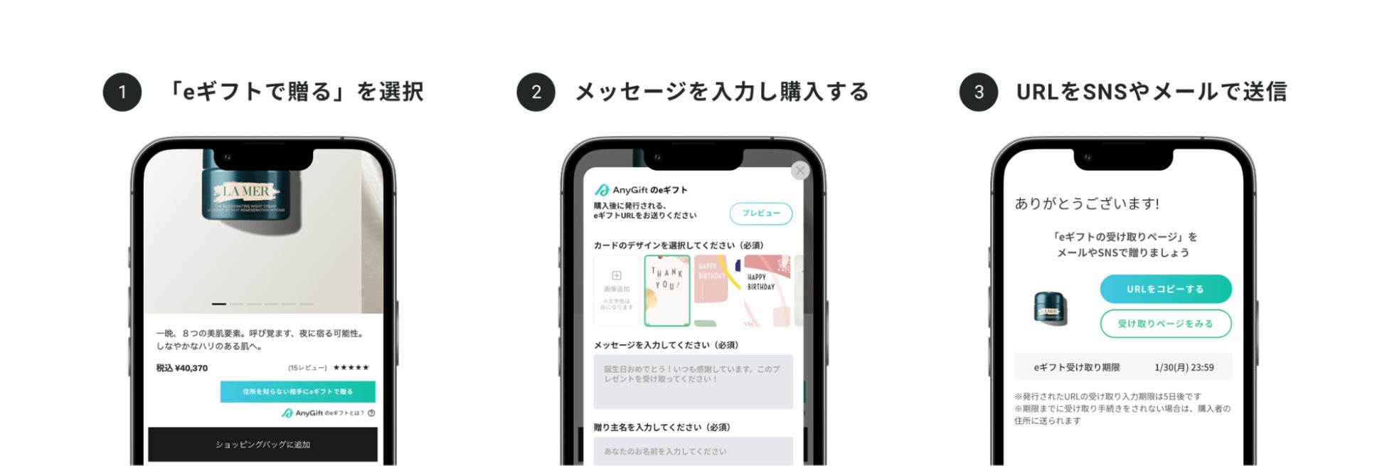 このような背景から、eギフトサービス「AnyGift」をラ・メール公式オンラインショップに導入いただくこととなりました。住所を知らなくても贈ることができるeギフトサービスを活用することで、より気軽に「ラ・メール」の製品をギフトとして利用できる環境が整いました。今回の取り組みにより、「大切な人へ、特別な体験を届けたい」というお客様の思いを実現しつつ、さらに多くの方々に製品が届く機会が広がることが期待されます。