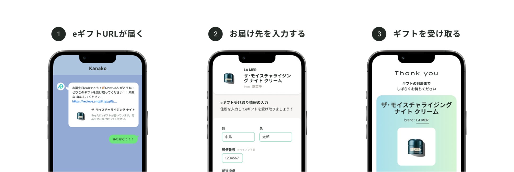 eギフトURLから住所を入力いただくだけで対象製品が届きます
