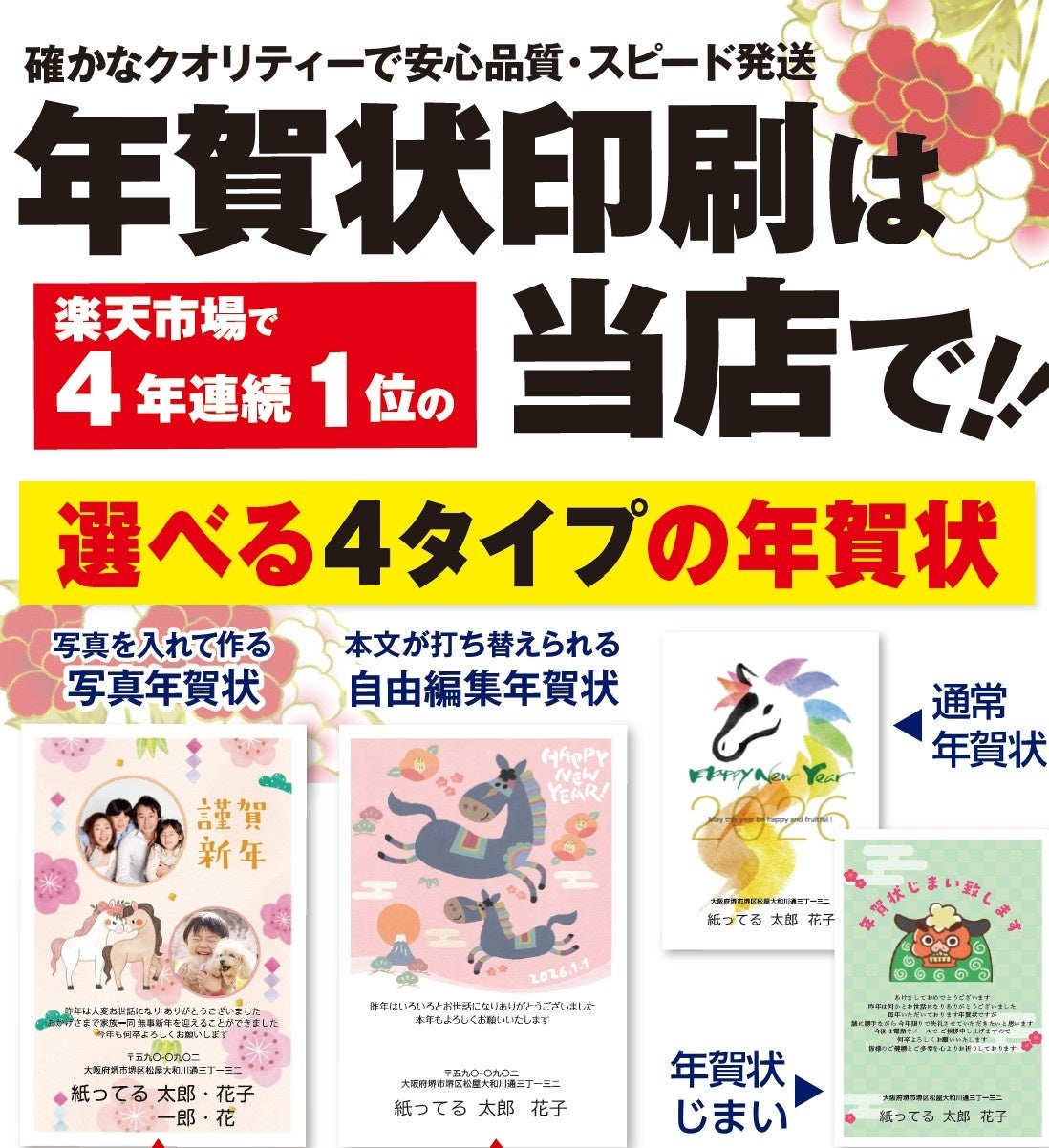 楽天市場で年賀状のネット印刷サービスを展開する「Kamittell」(運営:(株)高速オフセット、大阪府)は、2026年午年の「年賀状印刷サービス」を開始しました。