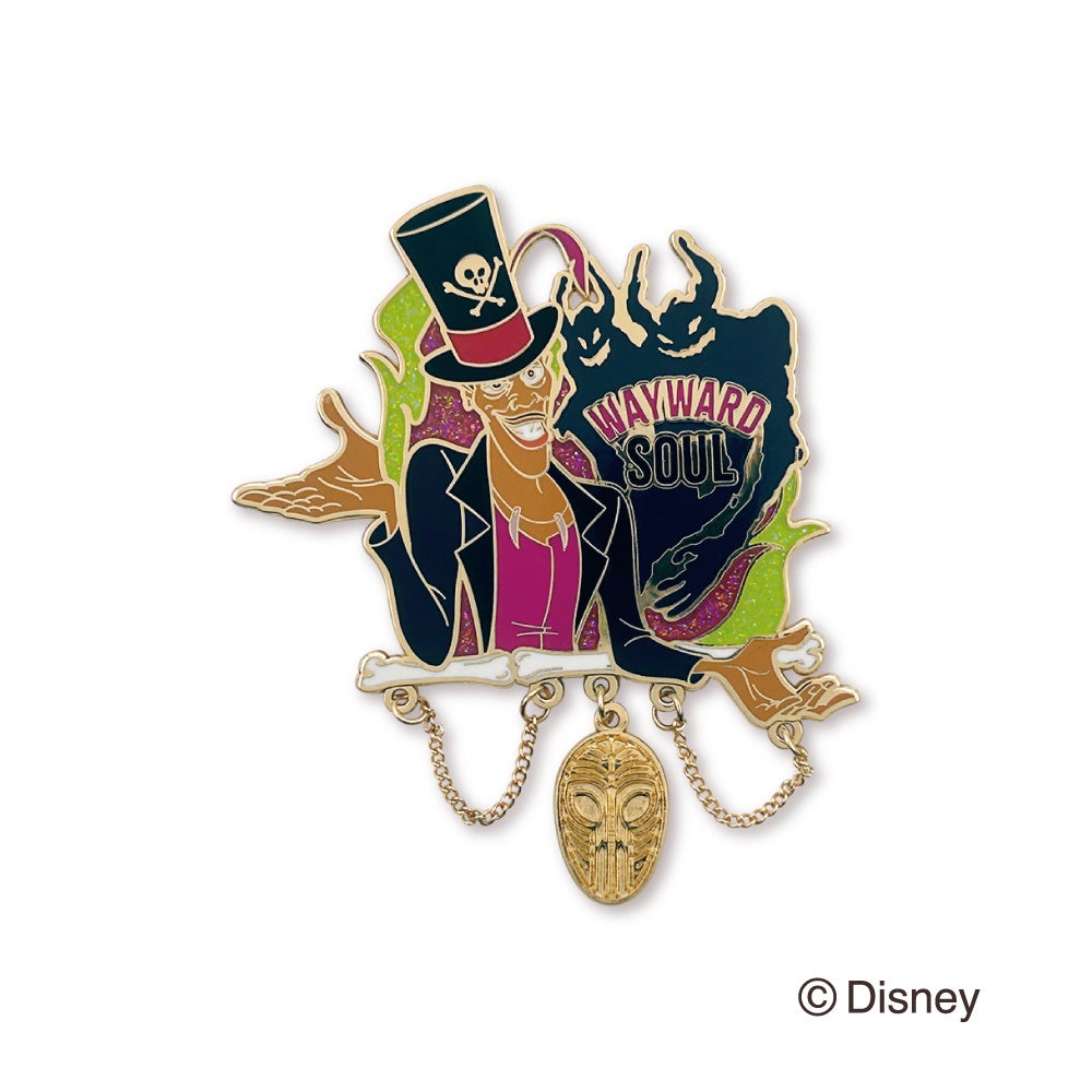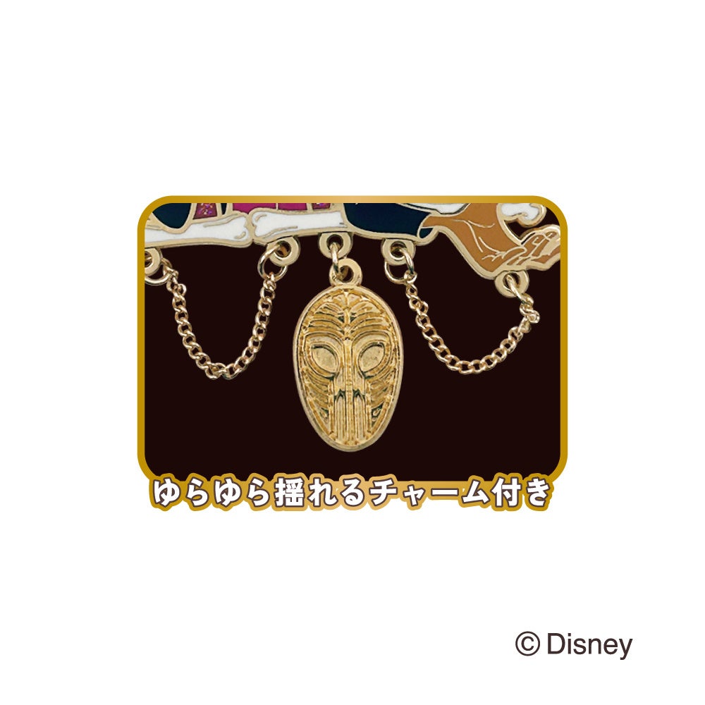 『プリンセスと魔法のキス』に登場する邪悪な魔術師ファシリエと秘密の仲間がデザインされたピンバッジ。ファシリエの魔術の源であるタリスマンが揺れるチャームになっています。