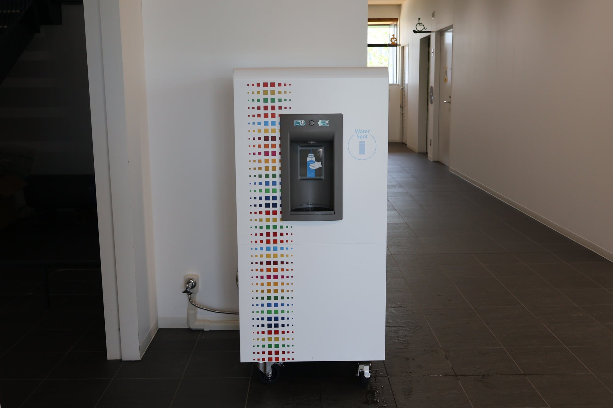 移動式の給水スポットを徳島市上下水道局1階に設置し、イベントなどでの使用時以外は上下水道局庁舎内でご利用いただけます。