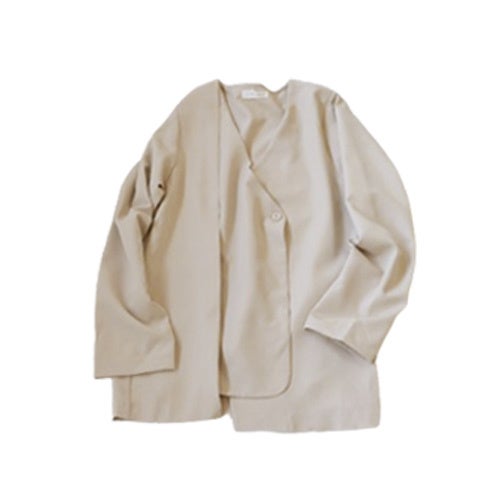 落ち感のある生地が上品な雰囲気をつくりだす。ゆったりとしたサイジングながら肩はセットインしてすっきりと見せ、オケージョンにもしっかり使える。