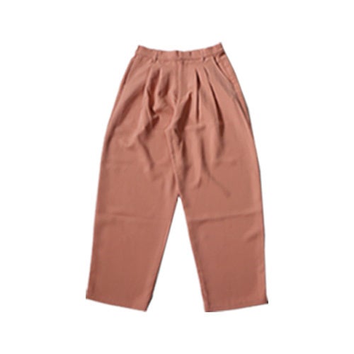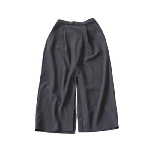緩やかテーパードで足元はすっきりと、太ももまわりはゆったりと楽ちんな穿き心地ながら、タックが立体感をだすことですっきりと美脚に見せてくれる。