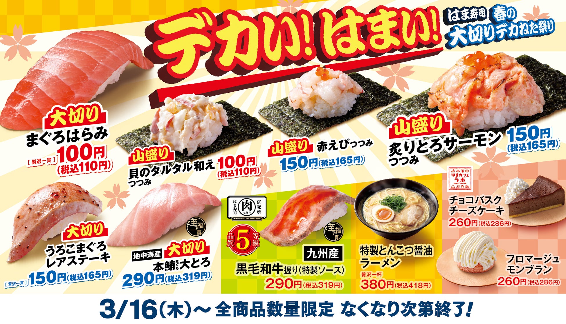 【はま寿司】デカい!はまい!春の新フェア「はま寿司 春の大切りデカねた祭り」開催!