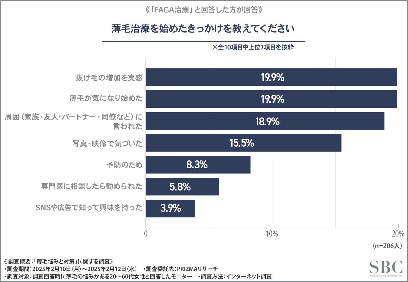 ●【薄毛治療を始めたきっかけ】5人に1人が「抜け毛の増加を実感」や「薄毛が気になり始めた」と回答(19.9%)