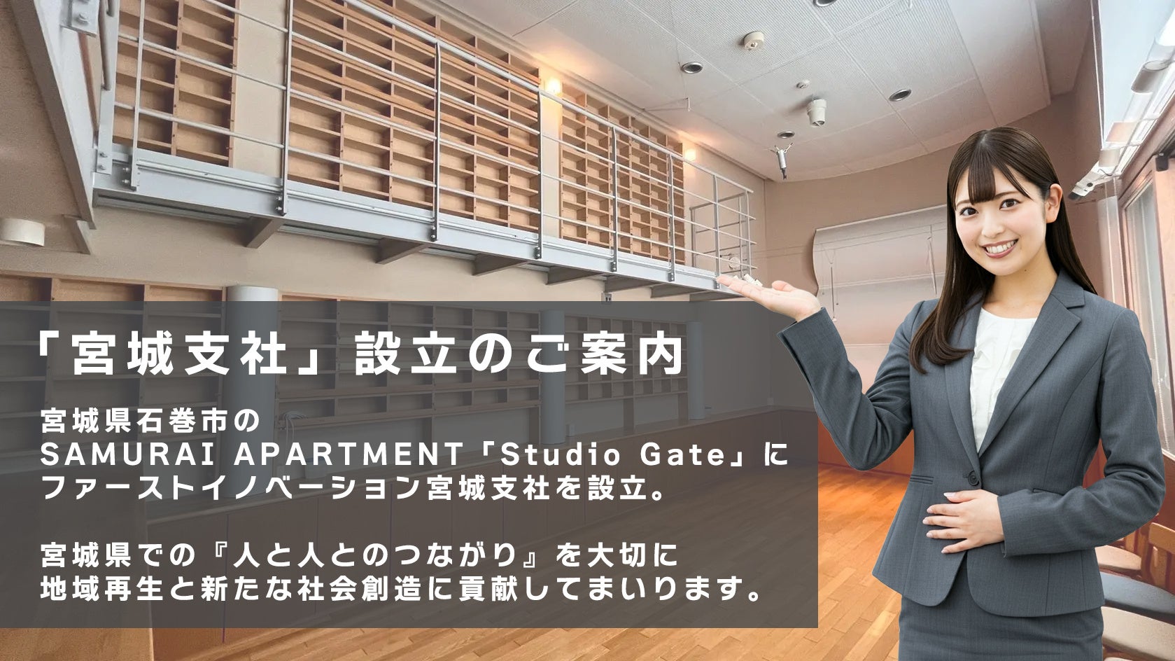 株式会社ファーストイノベーション(本社:東京都中央区、代表取締役社長:木ノ根雄志、以下ファーストイノベーション)は、この度、宮城県石巻市蛇田閘門30-1にあるStudio Gateに新たに宮城支社を設立することを決定しました。