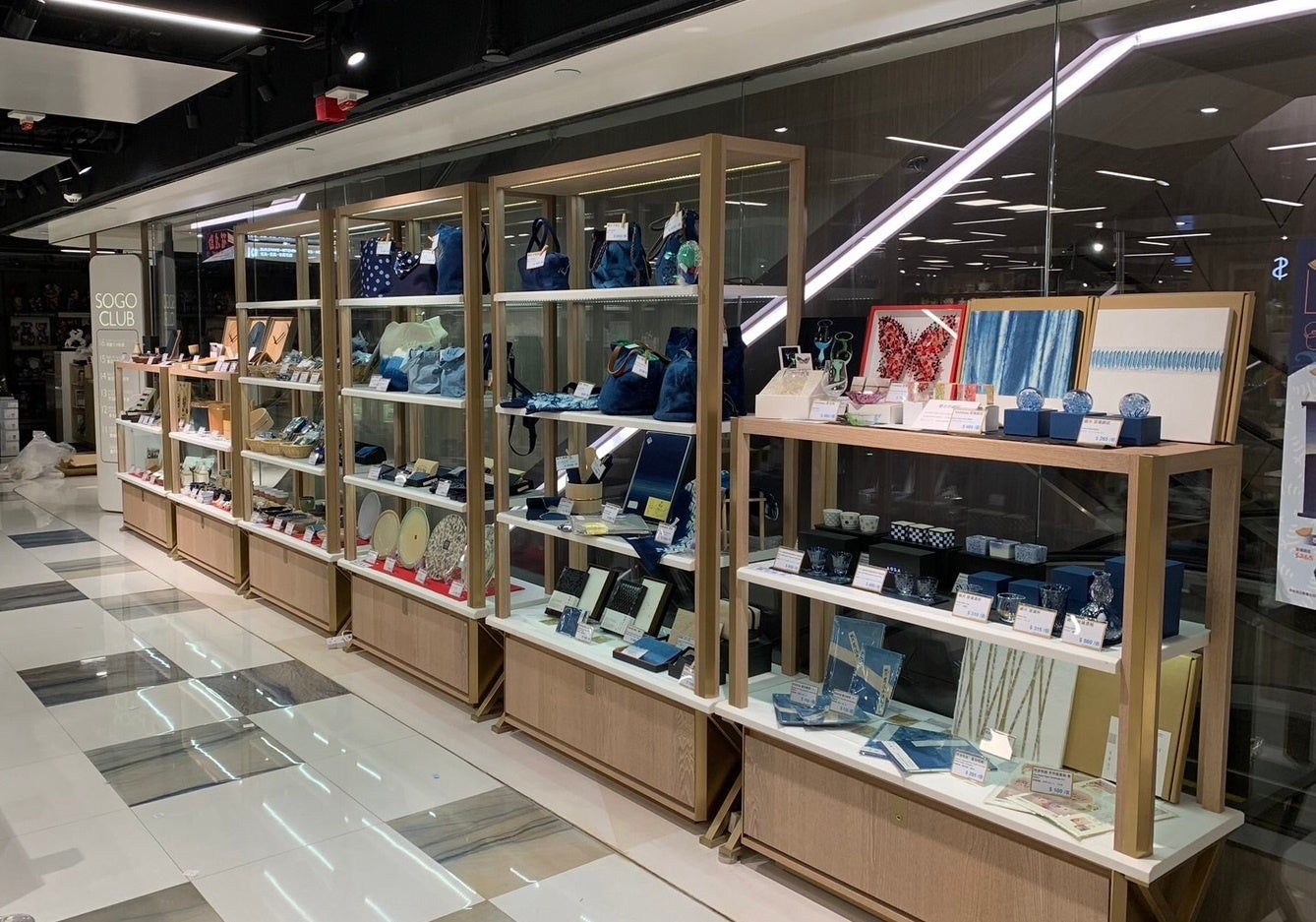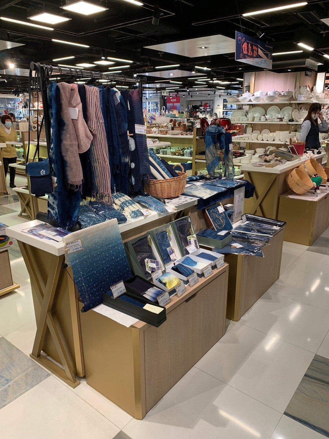 現地で人気の高い「藍染製品」をはじめ、本県の伝統工芸品である「大谷焼」や今回初めて出品する「阿波和紙」、「木工品」、「ガラス製品」などの工芸品、本県の名産のなると金時,ゆずなどの「加工食品」や海外で人気の高まっている「日本酒」や「梅酒」など、徳島県の魅力が感じられる様々な商品を香港の方々に向けて販売しています。