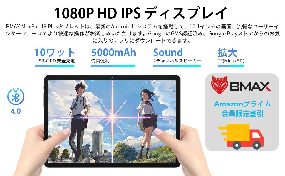 BMAX I9Plus は、Android 11 システムを搭載したタブレットです。10.1インチの大画面ディスプレイを搭載。 3G+32Gメモリーシステム。2.4G WIFI接続をサポート。家の子供や勉強中の学生に最適です。お子さまのゲームや動画鑑賞のお供に、また学生の勉強にもご利用いただけます。同時に、家で退屈しているときに、小説を読んだり、電子書籍を読んだり、お気に入りの写真を保存したりすることもできます。 Google システムをサポートし、Google モールからお気に入りのアプリをダウンロードできます。