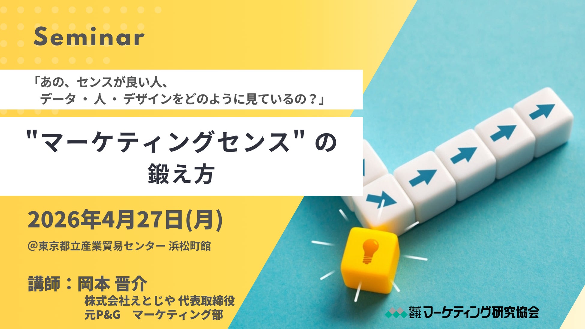 株式会社マーケティング研究協会は2026年4月27日、会場集合型セミナー「"マーケティングセンス" の鍛え方「センスの良い人」は、データ ・ 人 ・ デザインをどのように見ているのか?」を開催します。