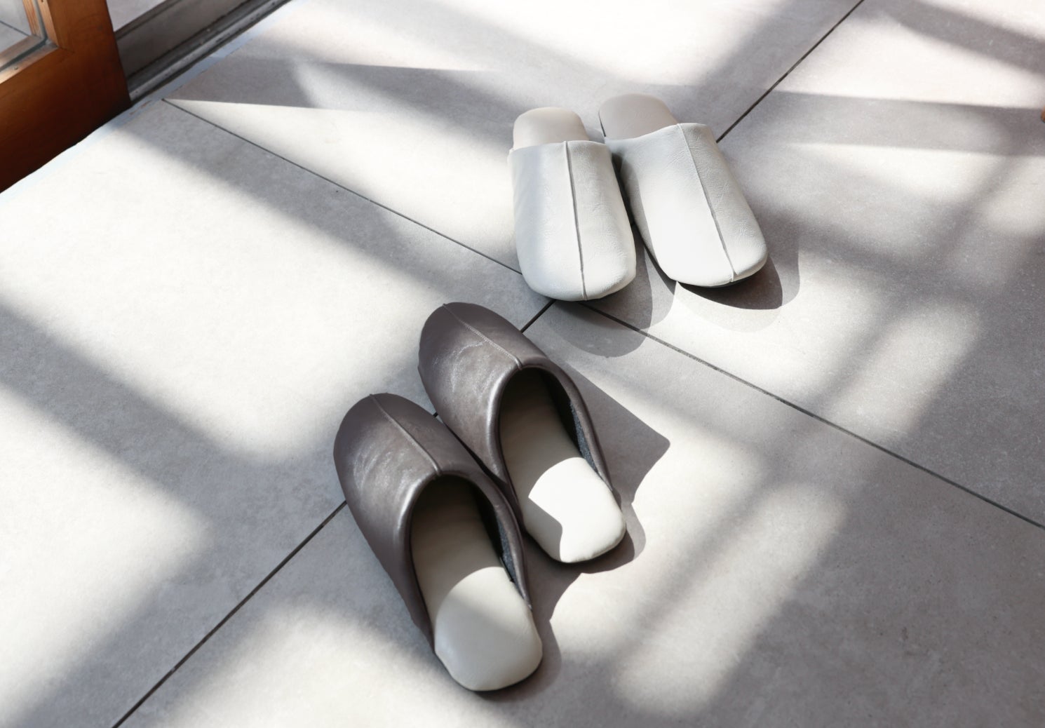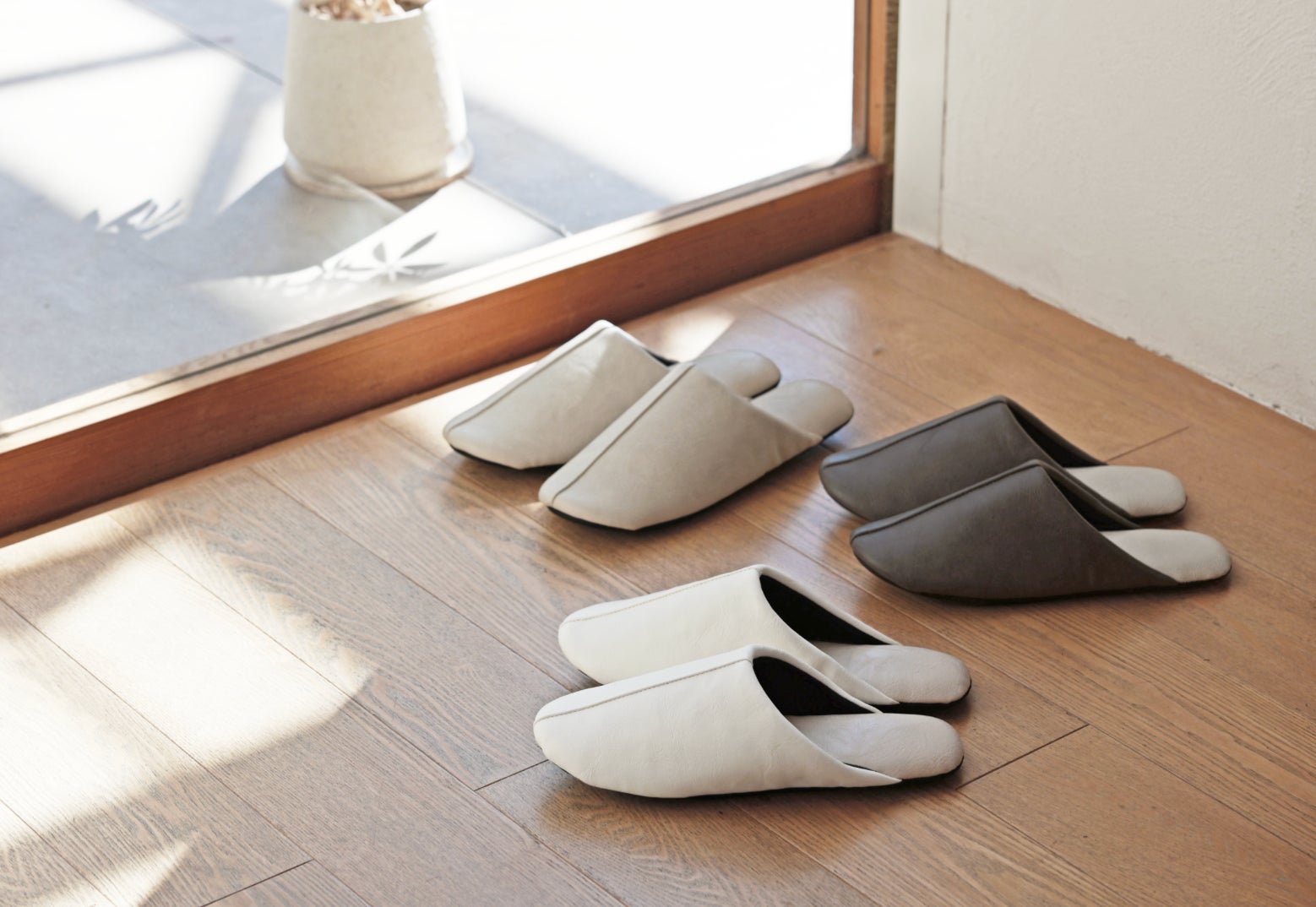 レザーに見えて、実はアルコール除菌対応!bon momentの人気商品「除菌ができるスリッパ」に、洗練ホワイト新登場