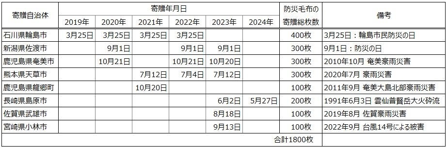 ◆防災毛布(災害支援用リサイクル毛布)の寄贈取り組み