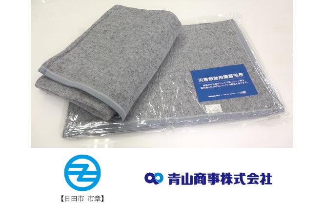 青山商事として大分県内で初めて日田市へ「防災毛布」を寄贈 ~自治体の災害対策を支援 お客様から回収した不要衣類をリサイクル毛布に~