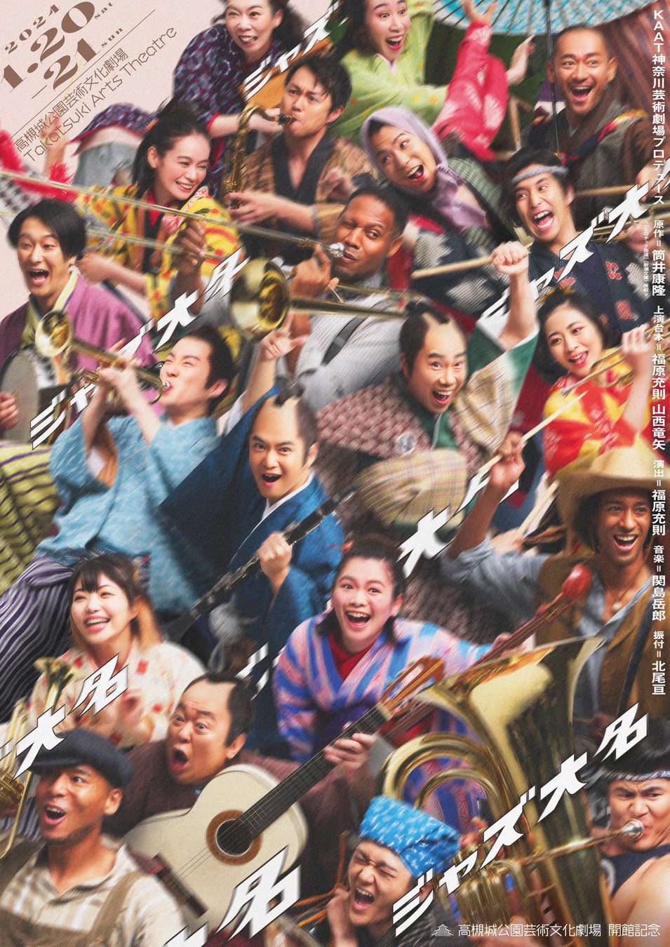 高槻城公園芸術文化劇場で令和6年1月20日(土曜日)、21日(日曜日)に上演される「ジャズ大名」の予約申込受付を本日開始しました。筒井康隆原作の小説を藤井隆、千葉雄大をはじめとした豪華出演者が、パワフルな生演奏やダンスとともに観客を楽しませます。