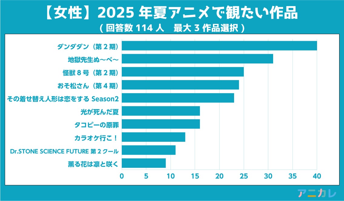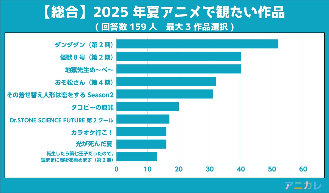 調査方法:インターネット調査、2025年夏アニメより観たい作品を1人最大3作品選択