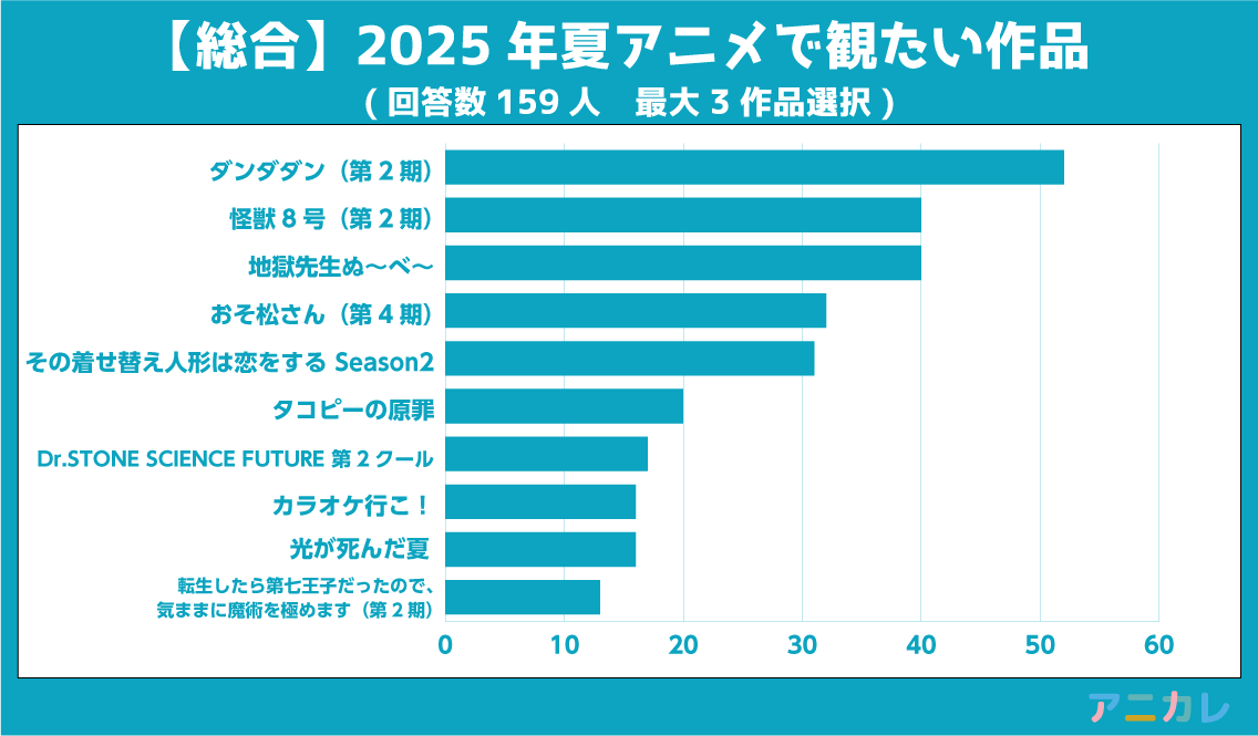 2025年夏アニメで観たい作品は?アニカレ調査結果発表!男女別&総合人気ランキングTOP10