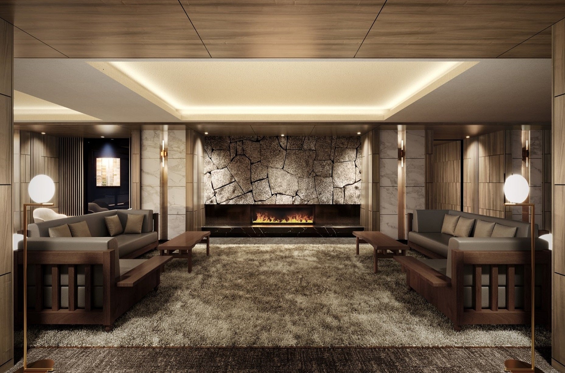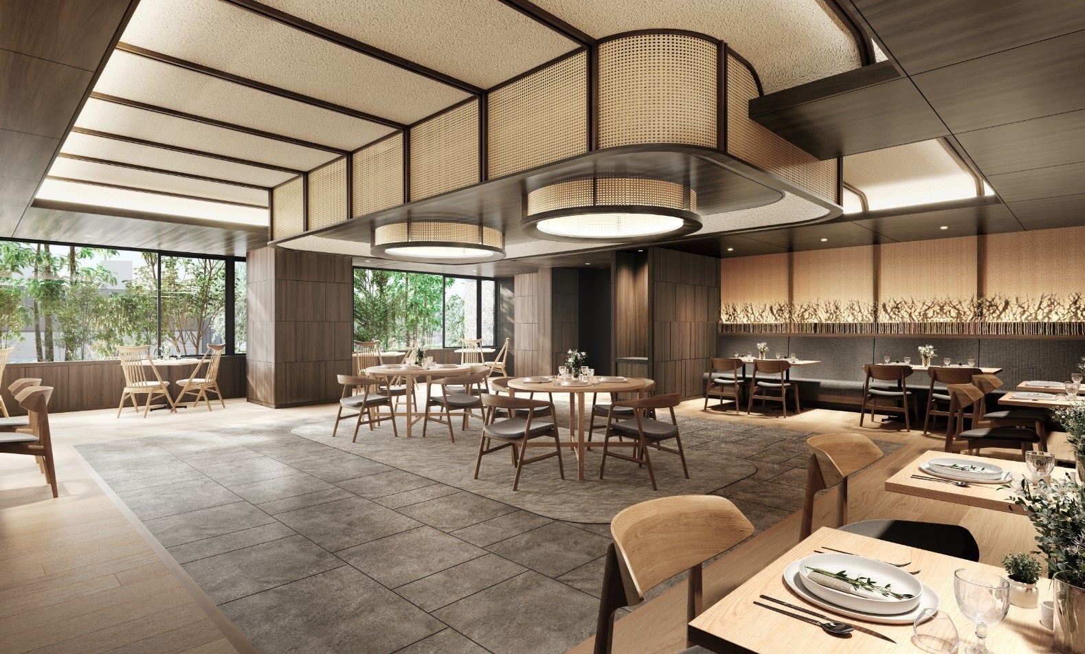 共用部分には介護事業所、レストラン、多目的室、大浴場、カラオケ・シアタールーム、健康相談室が配され、ご入居者皆様の第2のリビングとなる明るく広いラウンジも設えています。