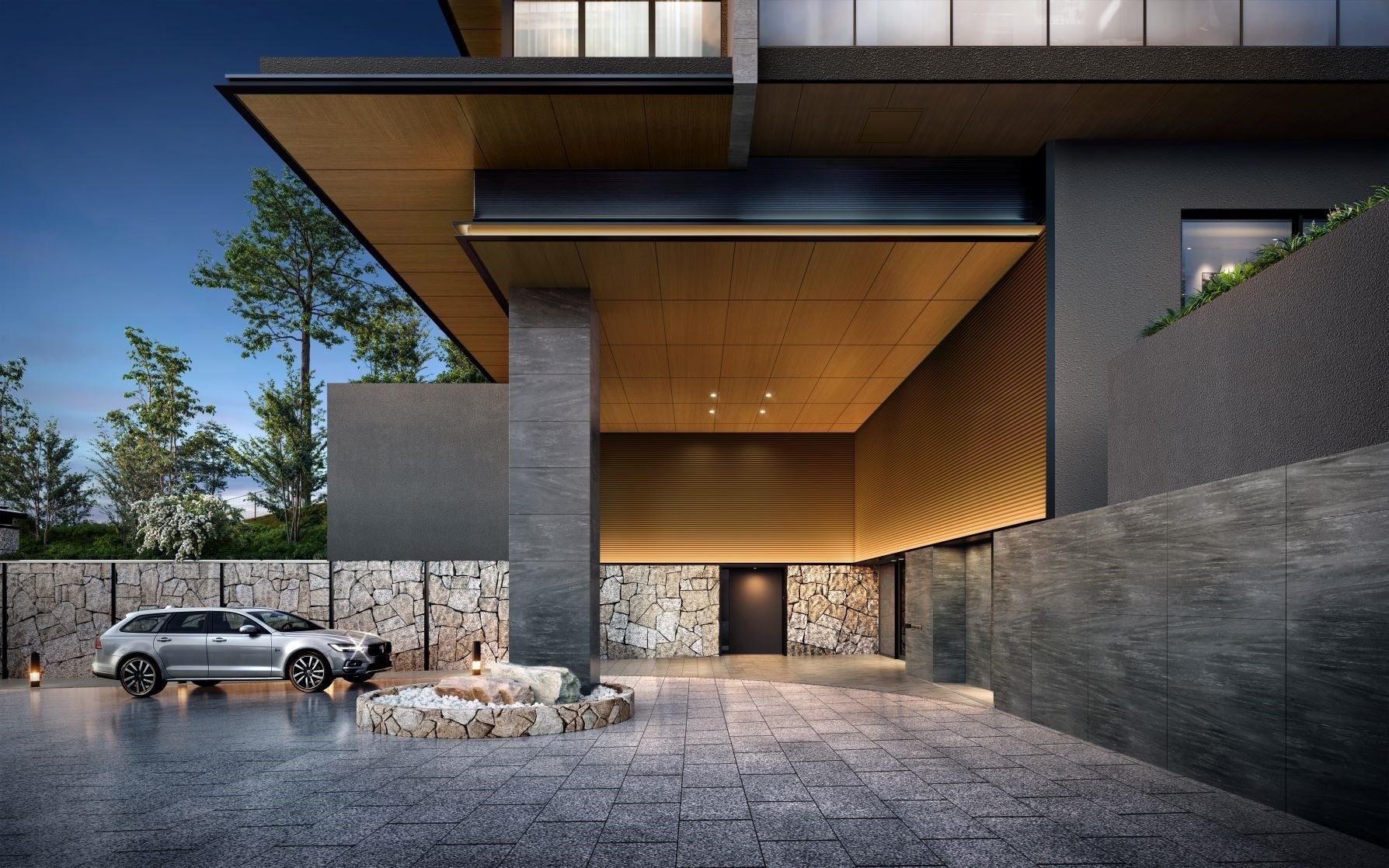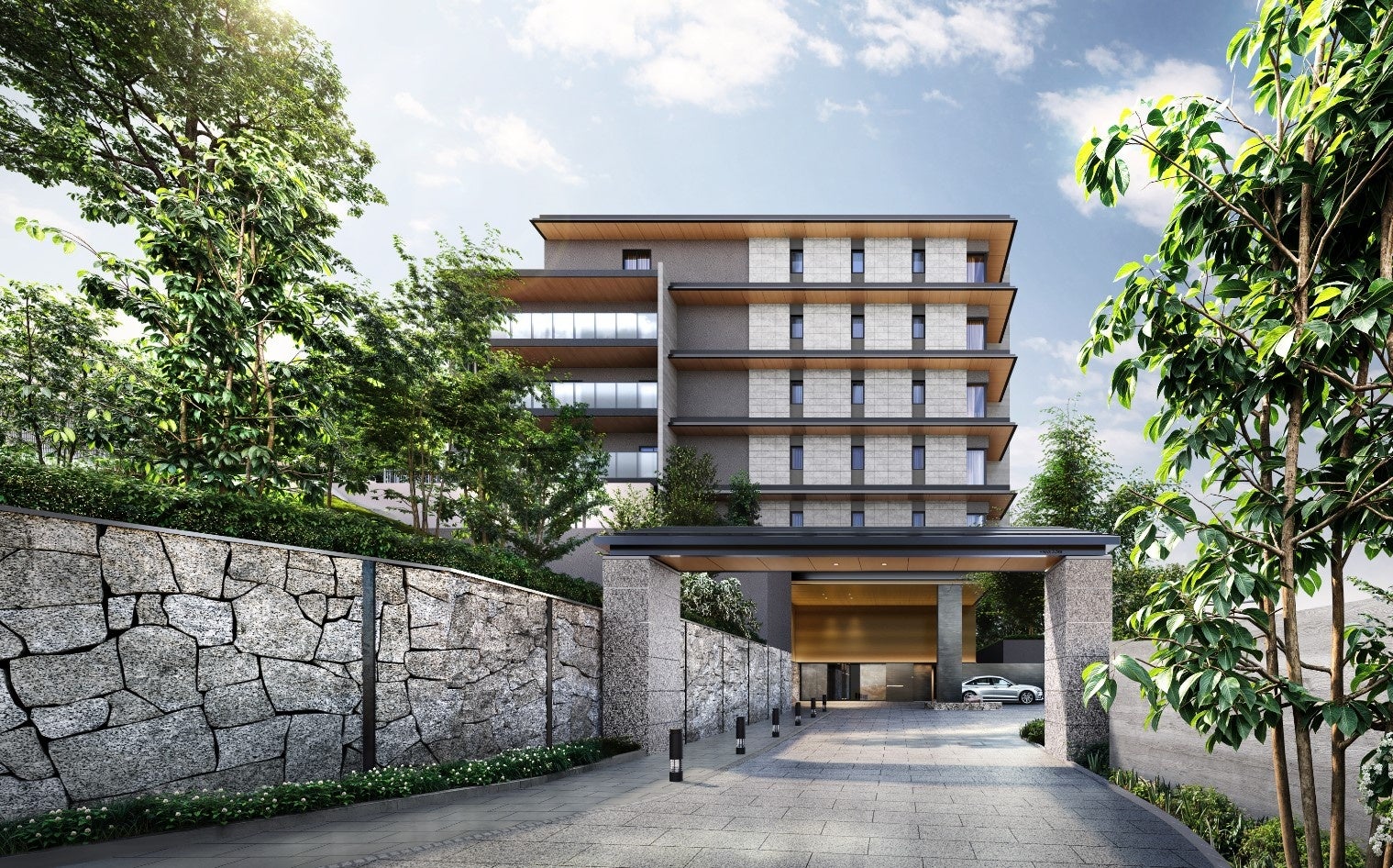 建物は地上7階地下2階建て、全123邸の豊かな緑に包まれた佇まいで、この地に建つシニアレジデンスならではの邸宅美を追求しました。立地特性を生かした光あふれる配棟計画、四季折々の表情が感じられる緑地計画により心豊かな空間づくりを目指しました。