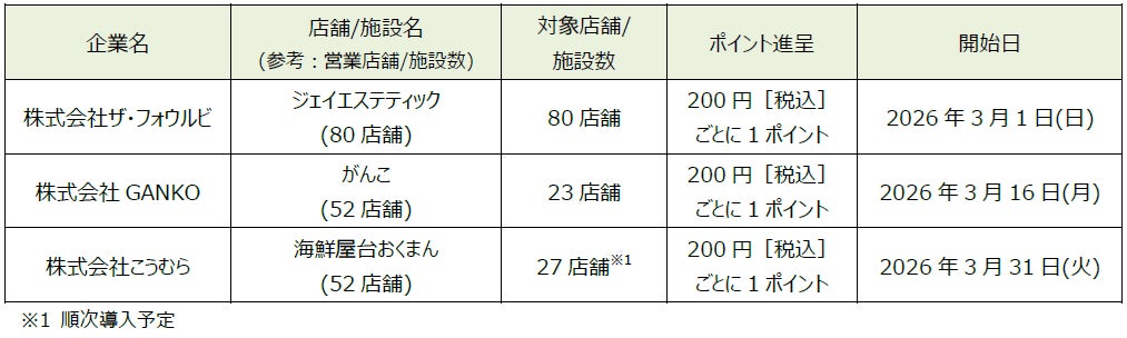 * 記載の店舗/施設数は、発表日現在の店舗/施設数となります。