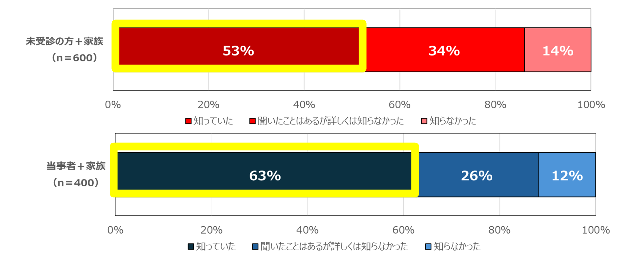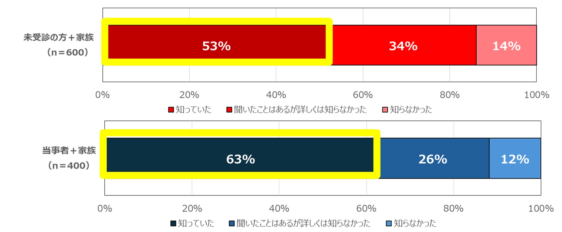 ※本調査結果において対象者①と②を「当事者+家族」、対象者③と④を「未受診の方+家族」と示します。