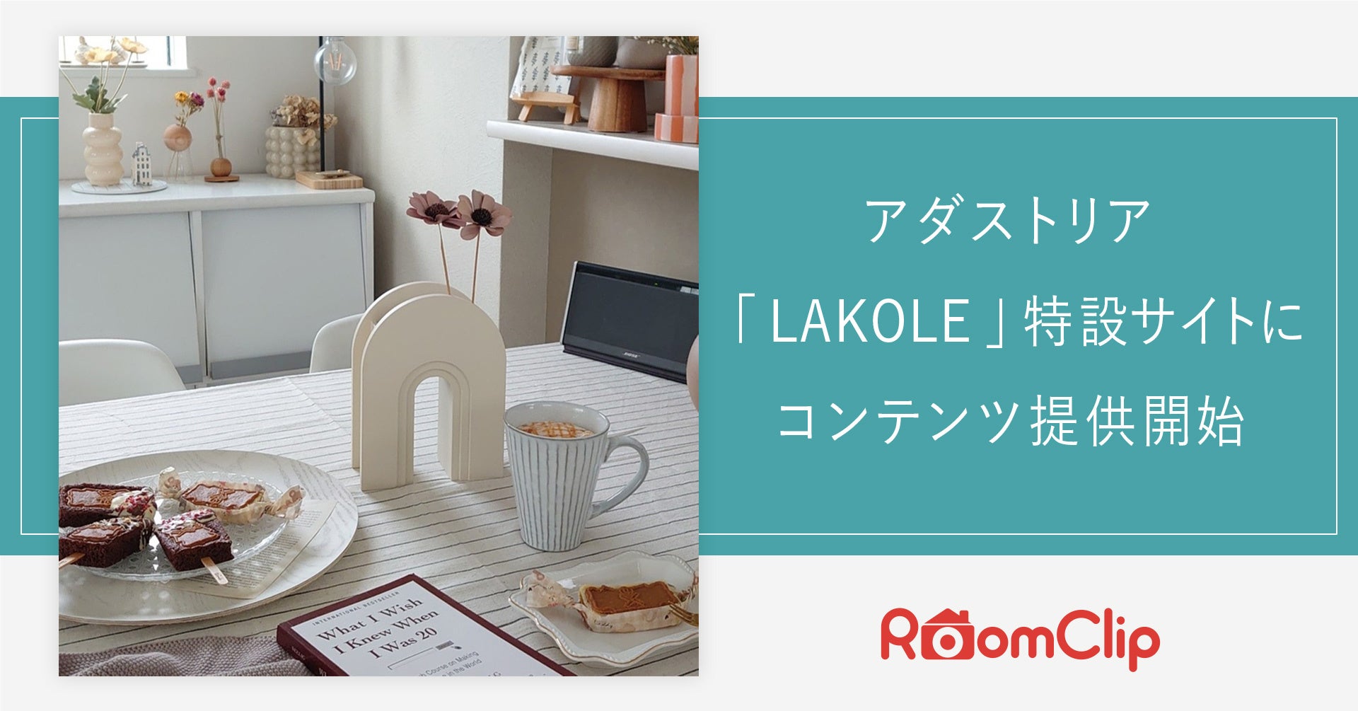 ルームクリップ株式会社(本社:東京都渋谷区、代表取締役CEO:髙重正彦、以下ルームクリップ)は、株式会社アダストリア(本部:東京都渋谷区、代表取締役社長:木村治)とコラボレーションし、同社が展開するライフスタイルブランド「LAKOLE(ラコレ)」の特設サイト「 ラコレハウス」へのコンテンツの提供を開始しました。RoomClipに投稿されたLAKOLEのアイテムを愛用するRoomClipユーザーの住まいの写真を閲覧することができます。またRoomClip内でLAKOLEのアイテムがもらえる投稿キャンペーンを合わせて開始しました。