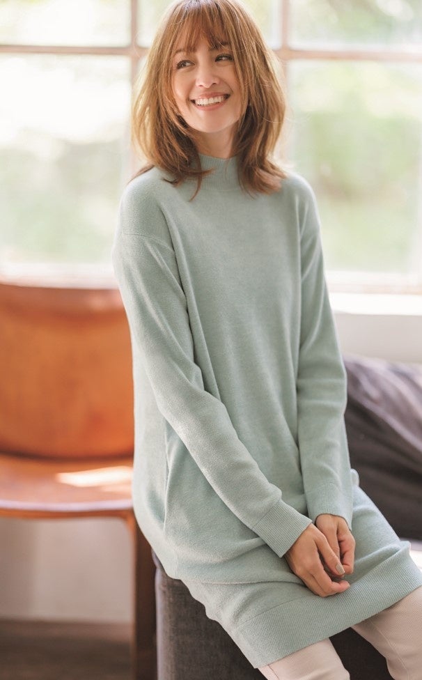 ふんわり軽く口どけの良いスイーツ「スフレ」のような、エアリーな着心地と肌がとろける感触を実現したニットシリーズが新登場。天然素材の再生繊維であり、シルキーななめらかさを持つレーヨンを配合した毛足の短いモール糸を、ナノミックス®と一緒にふんわり編み立てました。ふくらみのあるしっとりとした肌触りながら、軽く控えめなボリューム感で、すっきり着こなせます。