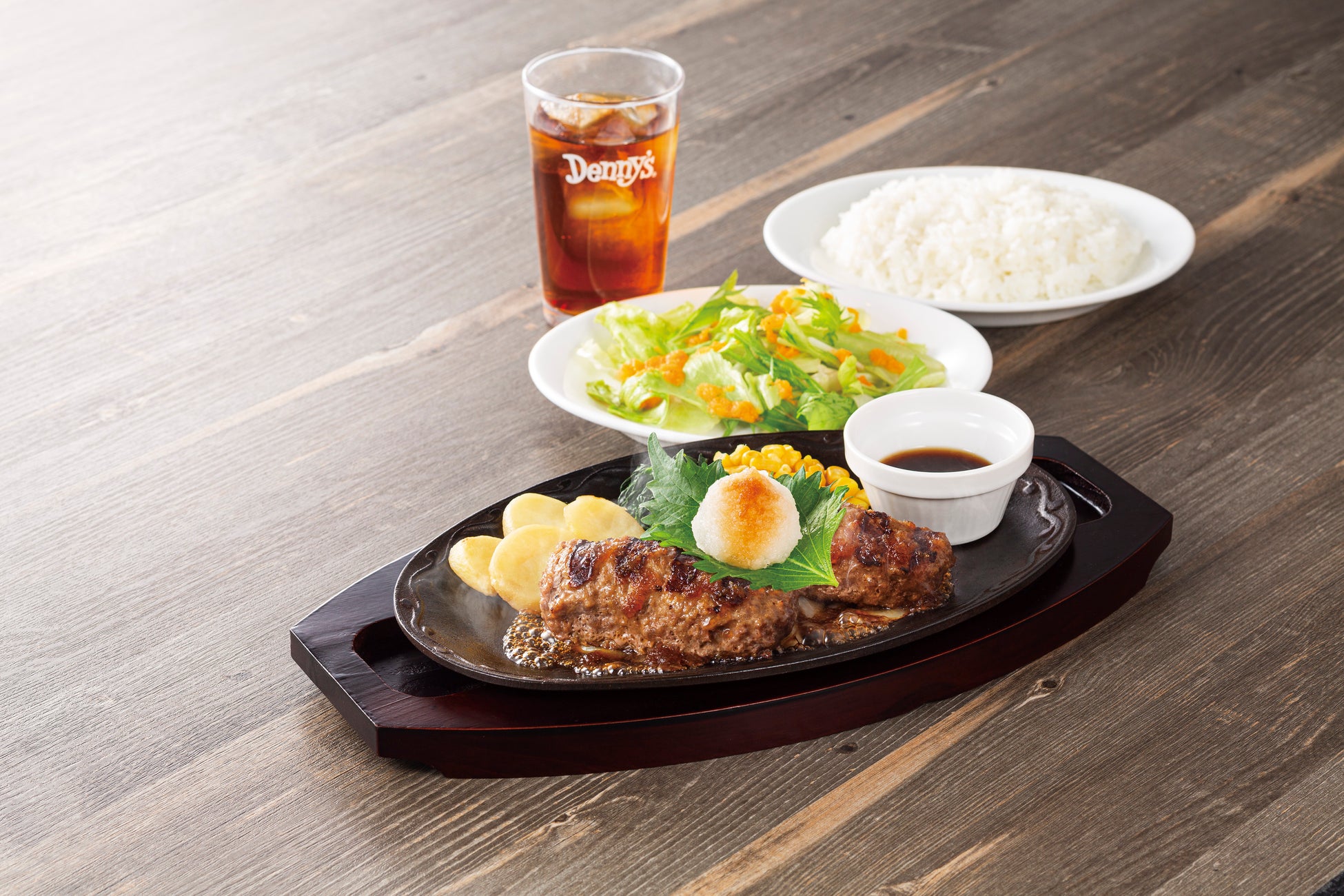 デニーズのBEEFハンバーグは配合や混ぜる時間に工夫を重ねることで、しっかりとした噛み応えがありながらふっくらと柔らかく仕上げました。また、肉本来の味をしっかり味わえる仕立てにし、夏にぴったりのさっぱりとしたおろしソースでお召し上がりいただけます。