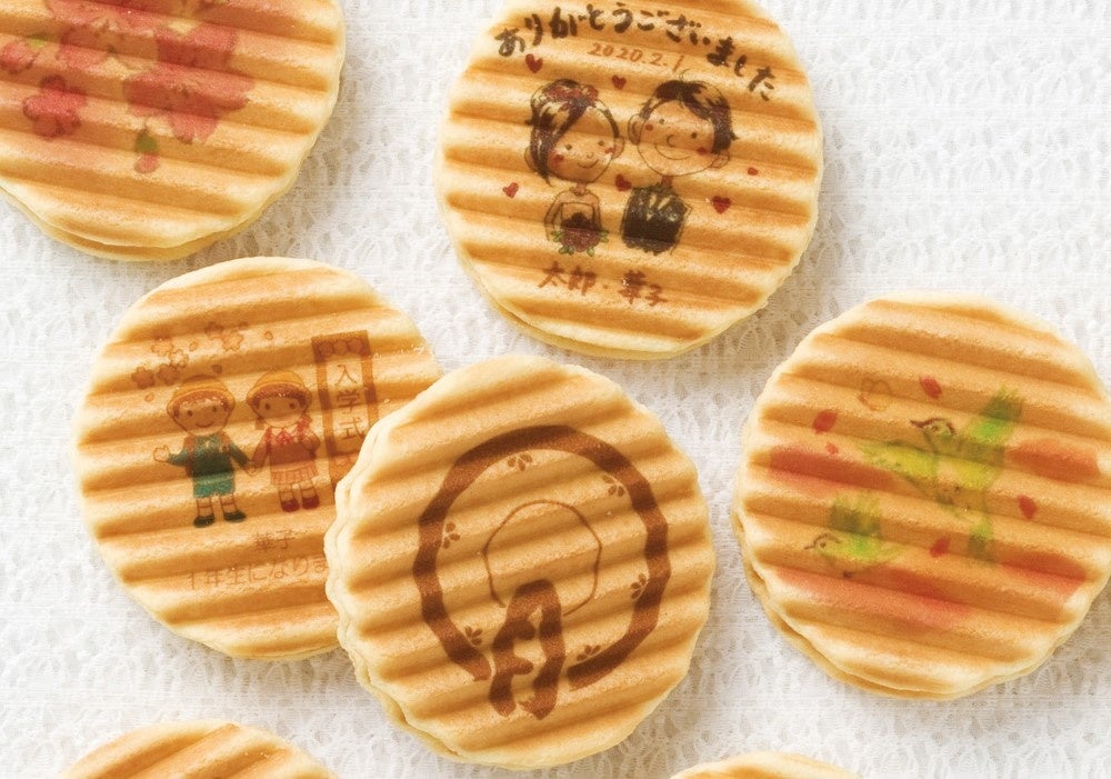 オリジナルプレミアム千寿せんべいとは、「ユニクロのロゴ入りプレミアム千寿せんべい」のような特別なプレミアム千寿せんべいを1枚から個人様・法人様に関わらず、フルカラーでプリントができる商品です。