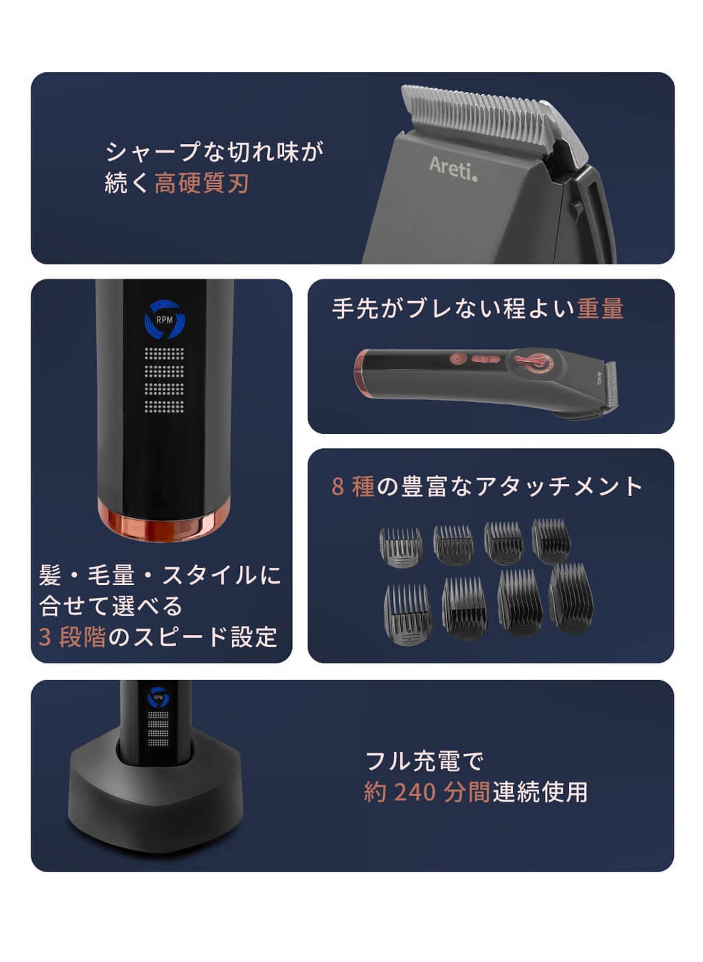 スッキリ刈り込みたい春も大活躍する大容量バッテリー&ハイスペックなプロクオリティのバリカンです。