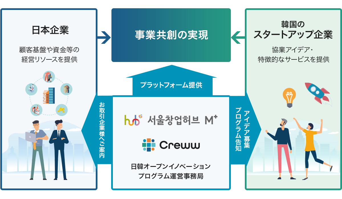 今回、Crewwが韓国で実施する初のプログラム『ソウルスタートアップオープンイノベーションプログラム』の開始を皮切りに、韓国をはじめ、さらにグローバルなオープンイノベーションを促進し、日本と海外との架け橋になれるよう取り組んでまいります。