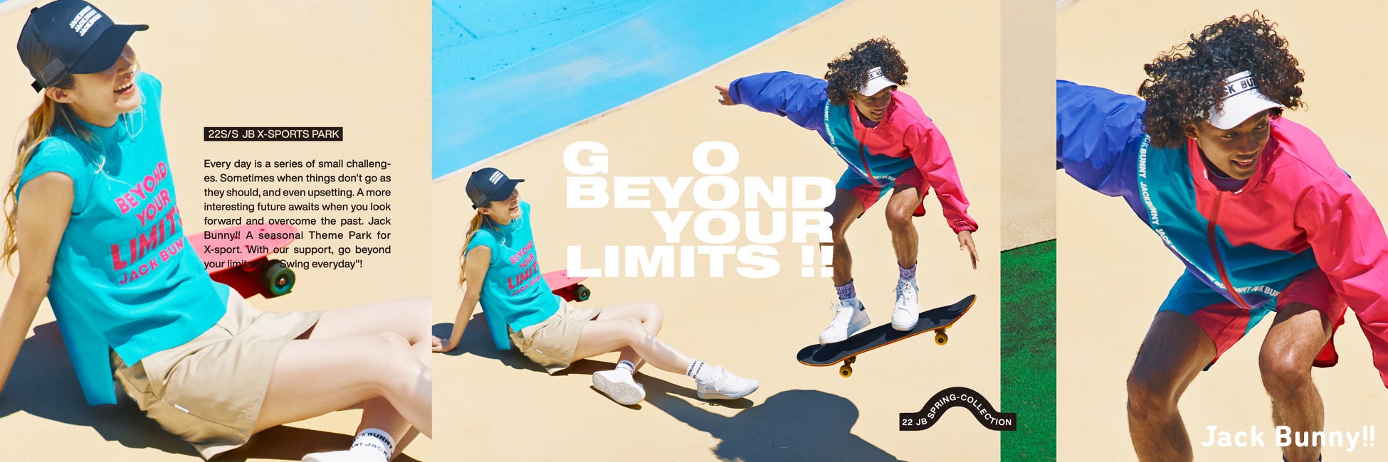 「EXTREME SPORTS PARK(エクストリーム スポーツ パーク」をテーマに人気のエクストリームスポーツや、それに付随するユースカルチャーに着目し、SNS映えもゴルフ場映えも間違いない、ジャックバニーらしい楽しいコレクションを提案しています。