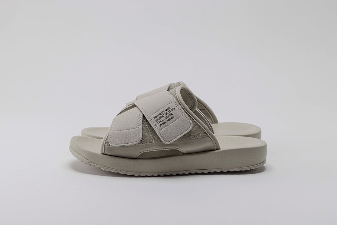 ユニバーサルデザインの心地よさをデイリーユースに。履く人に合わせた位置でベルトを調整できるサンダルタイプ。MODIは「修正する、部分的に変更する、改造する」などの意味をもつModifyに由来。21SSに登場した「ALLPE(オルパ)」の個性を受け継ぎながら、足を包み込むアッパー構造とコンフォート性を向上させたソールユニットにモディファイ。
